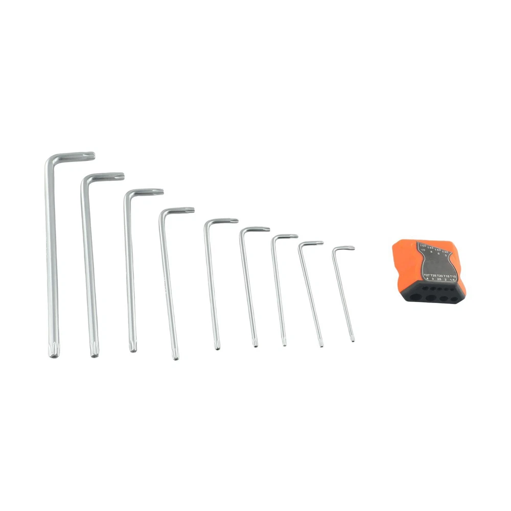 Product Description Features: *Forged with high quality chrome vanadium steel material, high hardness, toughness, large torque and long life; *The multiple specification for Torx Hex key including 9 sizes can be used in different scenarios. *Extended handle, labor-saving, convenient , suitable for car repair, machine repair and other fields; Specifications: *Material: Chrome vanadium steel *Color: as shown *Model: for T10, T15, T20, T25, T27, T30, T40, T45, T50 *Size: As picture show *Quantity: 9 pieces Package Contents: 9 * for Torx Key Note: 1. The real color of the item may be slightly different from the pictures shown on website caused by many factors such as brightness of your monitor and light brightness. 2. Please allow slight manual measurement deviation for the data. Payment Payment must be completed within 5 days. If you have any problems about payment, please contact us via ebay message. Delivery details We only ship to confirmed ebay Order addresses. Please comfirm that your Order address is in line with your shipping address. Please kindly note that the c ombined shipping is not provided because the shipping fee is calculated by weight. Also, the each additional item means exactly the the same color and size. It takes about 7 -15 working days to US; about 10-30 working days to other countries. Transit time may be a little delayed because of the bad weather and customs inspection . If you do not receive your item within 30 working days since payment finished, please contact us immediately for further assistance. Contact us We strive for 100% customer satisfaction! Positive Feedback is very important to us. If you have any questions, p lease feel free to contact us via "Ask seller a question" . We will reply your email within 24 working hours.