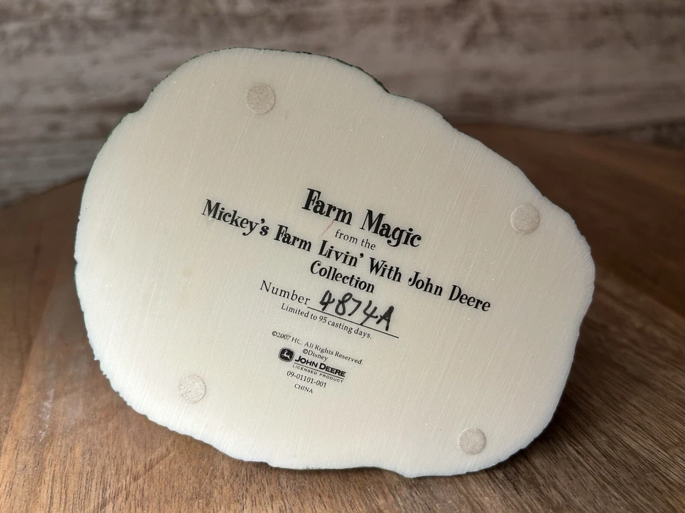 This collectible item is part of the Disney 2007 Magical Harvest Mickey's Farm Magic Livin' w/ John Deere Collection. It features a John Deere theme and was manufactured in China in 2007. The item is an original and represents agriculture in a fun and unique way. No box!