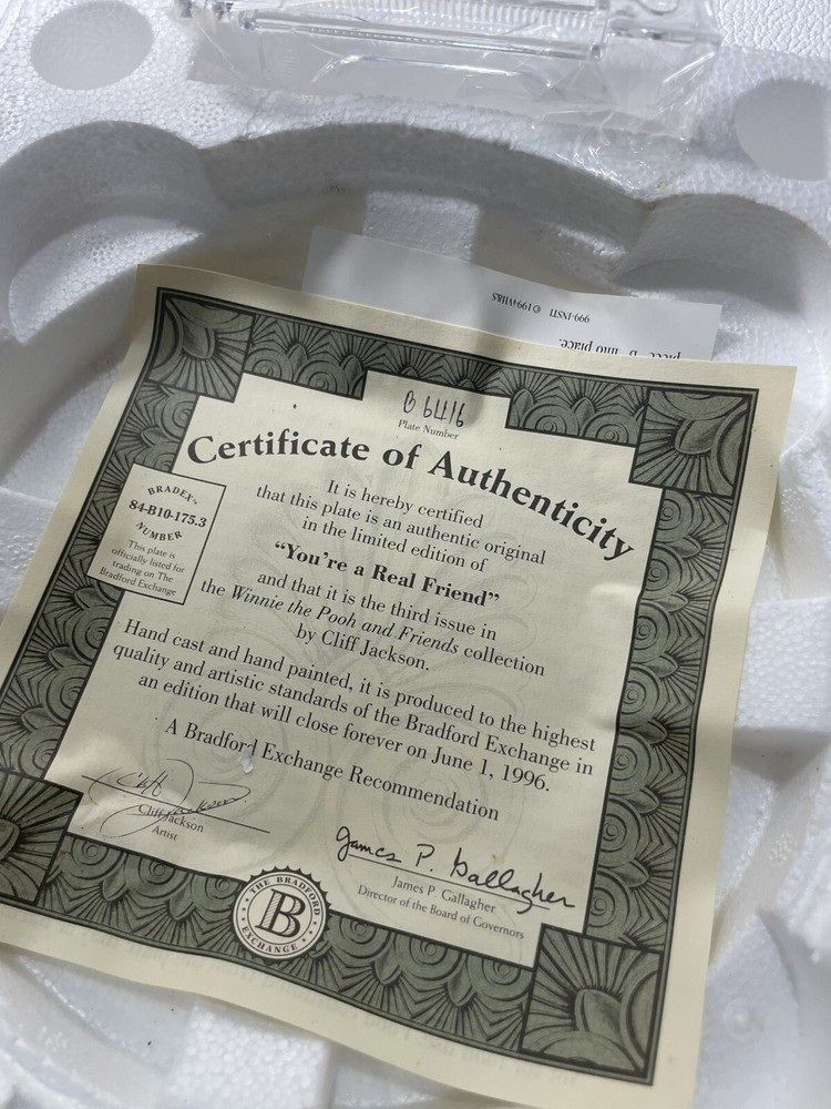 HomeDisney Bradford Exchange Winnie the Pooh Your A Real Friend Collectible Plate with COA and Foam Box
