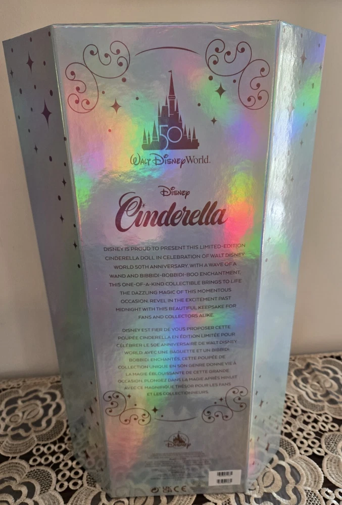 This listing is for the Gorgeous doll shown. I bought this doll in Europe from ebay and had it shipped to US. This was my first and last time ordering from UK. Since the custom house was too lazy to open the box, so they just cut the shipper box, leaving an indentation mark on the front panel of the doll's box. The pictures are included. It's only visible under a certain angle. It seems Disney made only 1500 of these dolls, based on the cardbox numbers. Also her skirt was attached differently, I noticed the castle embroidery is on the front now. Photos also included. I actually find it unique. Please review pictures since this is the doll you will receive. I'm a collector, purchased this doll from ebay. Unfortunately I have to sell her due to personal reasons. Please see the photos as they are part of the description. Any questions please ask. This is a smoke and pet free home. Thank you for checking out this item!