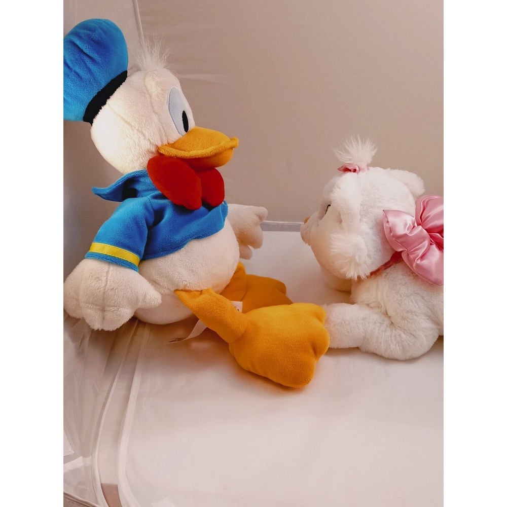 Bring home the magic of Disneyland and Walt Disney World with this 16-inch plush stuffed animal featuring Donald and Daisy Duck. Perfect for collectors of Disneyana and plush toys, this sailor-themed plush is a must-have for any fan of the franchise. With its high-quality design and attention to detail, this plush is sure to bring joy to any child or adult who cuddles with it. Don't miss out on the chance to add this charming piece to your collection.