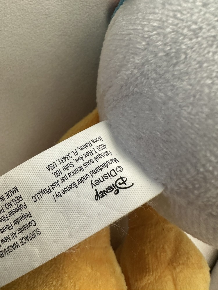 The product is a 10" plush stuffed animal of Donald Duck, a popular character from the Disney franchise. The plush features Donald Duck wearing his iconic blue jacket and cap, making it easily recognizable to fans. It is an officially licensed Disney product, manufactured in China by Just Play. This collectible item is perfect for Disney enthusiasts looking to add a cute and cuddly version of Donald Duck to their collection.