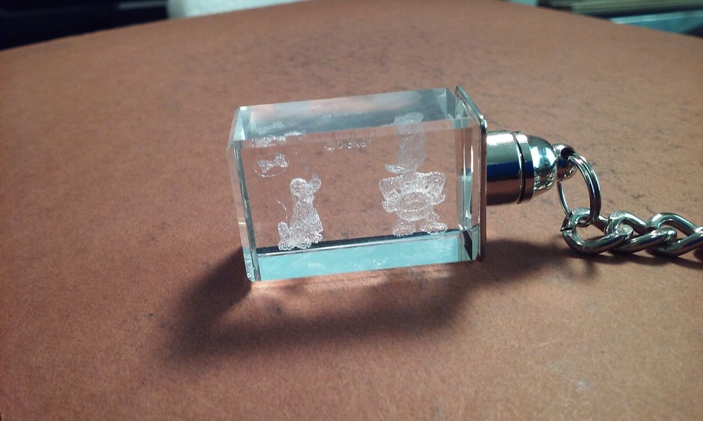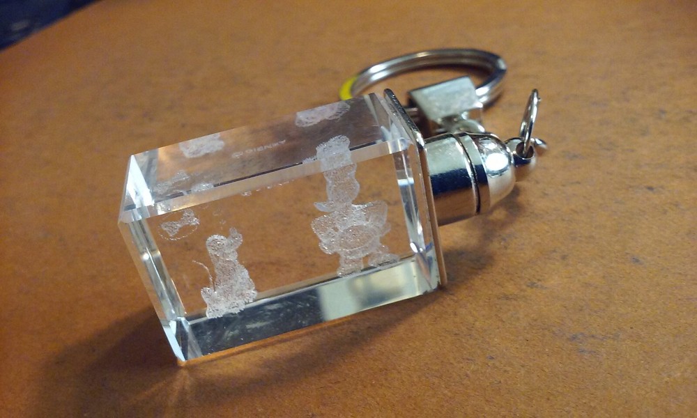 Disney Donald Duck & Bolivar Laser-Etched Glass Cube Keychain