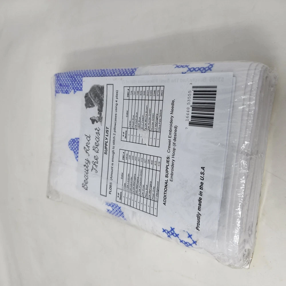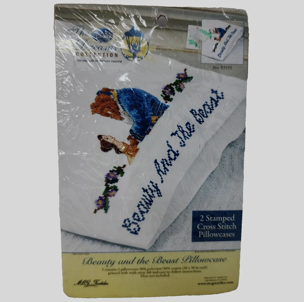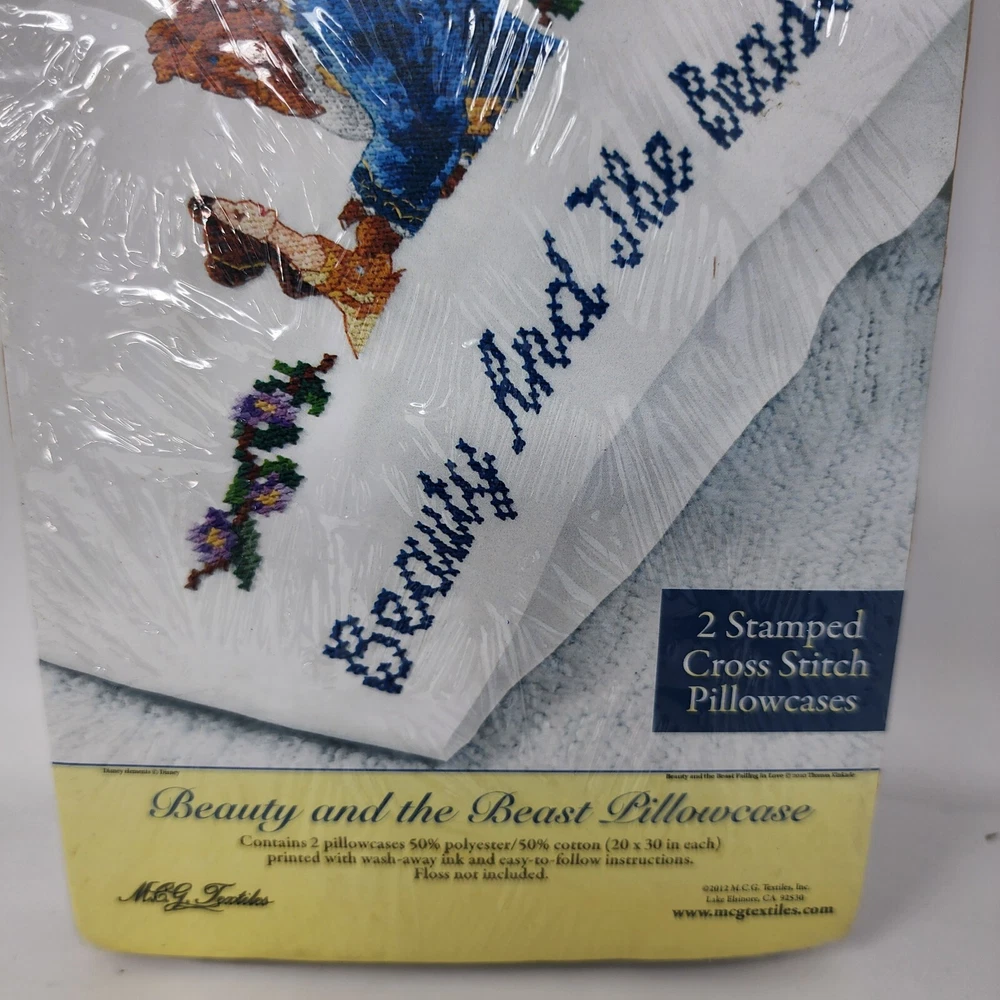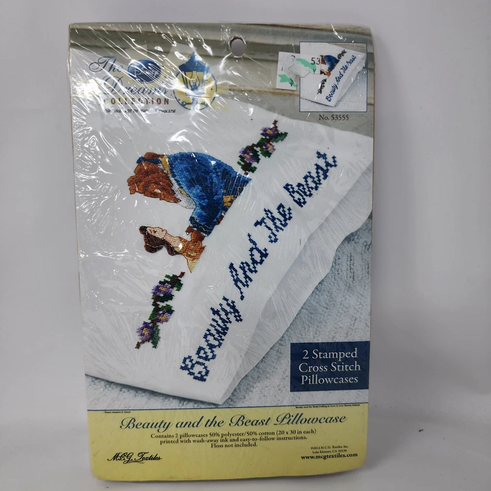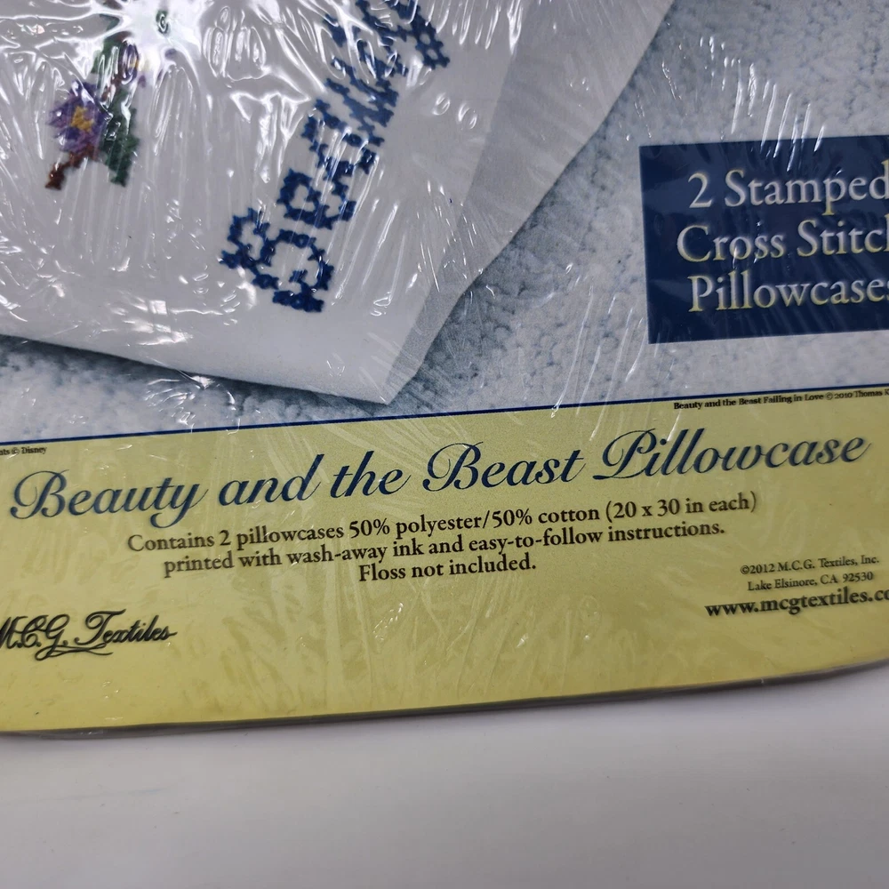 Disney Dreams Collection Beauty & The Beast Stamped Cross Stitch Pillowcase Kit Brand: MCG Textiles Type: stamped cross stitch pillow cases kit to make includes two 20" x 30" pillow cases does not include floss Color: white Condition: new International Buyers: Please note item cost and shipping does not cover any customs fees, import tax, VAT or any other cost associated with the import of this item into your country. All fees are buyers responsibility. Item will NOT be marked as gift and value not be changed because it is against the law. #14