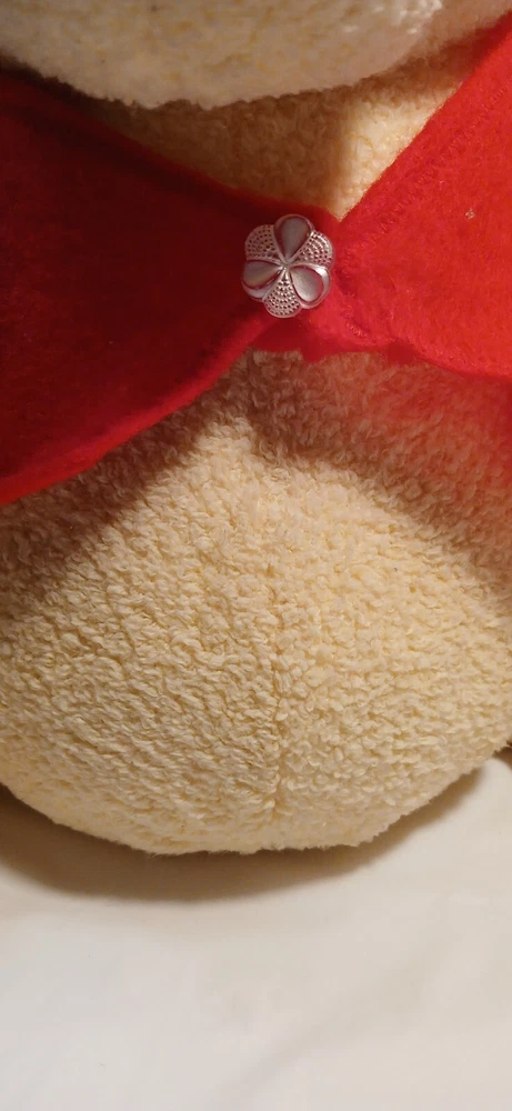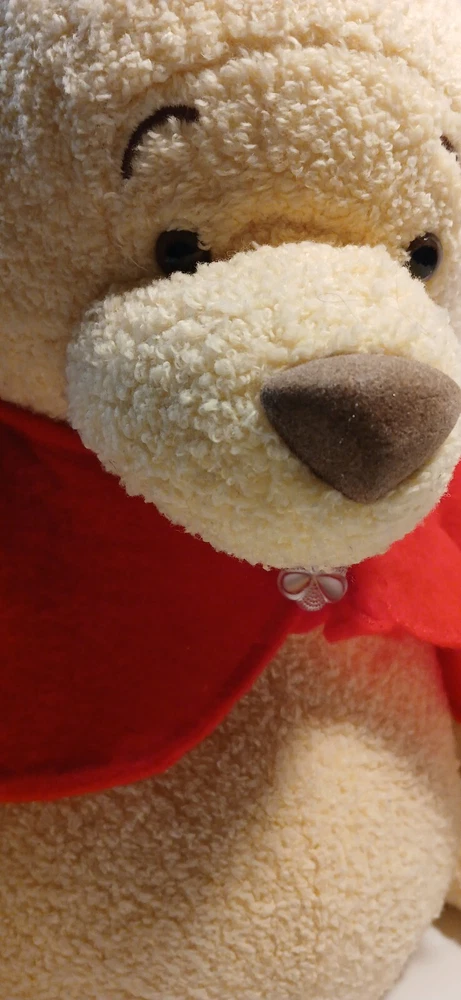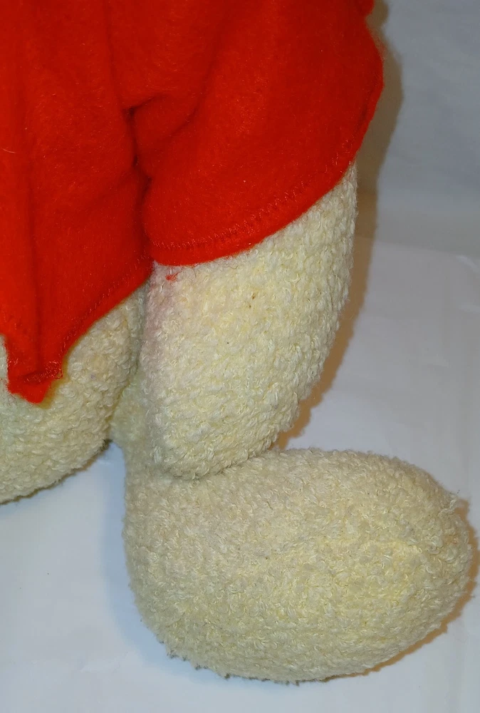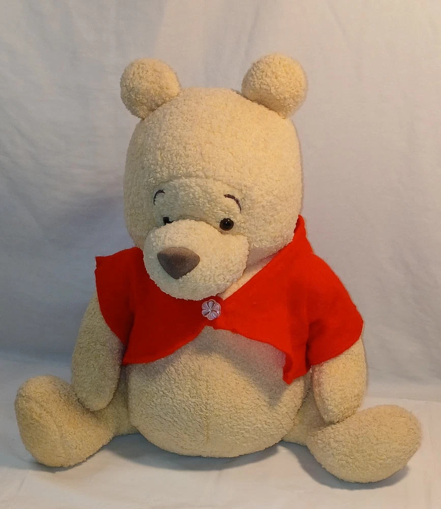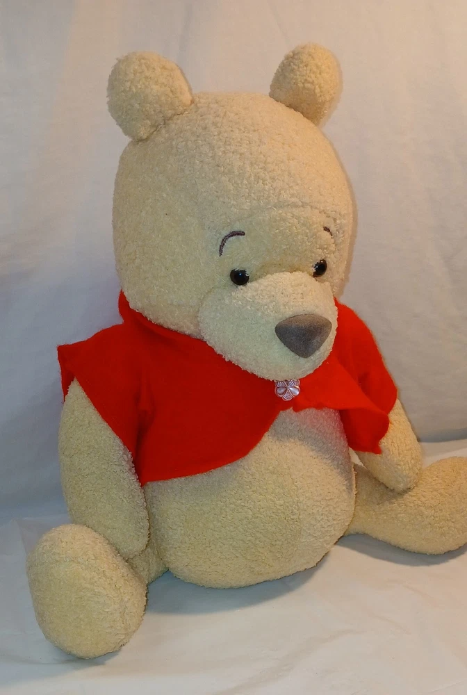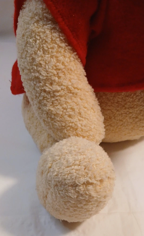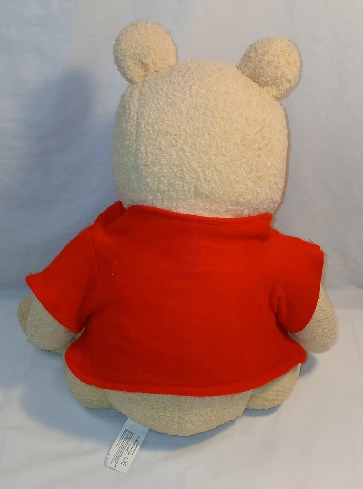You receive the exact item shown. Please see the pictures as they depict multiple angles and close ups. Tape measure is shown for size reference. Plush Winnie The Pooh has no damages, holes, or rips that I could find. He is clean and from a smoke-free environment. You should still wash and clean it to your own personal standards. Ships to you by the next business day.