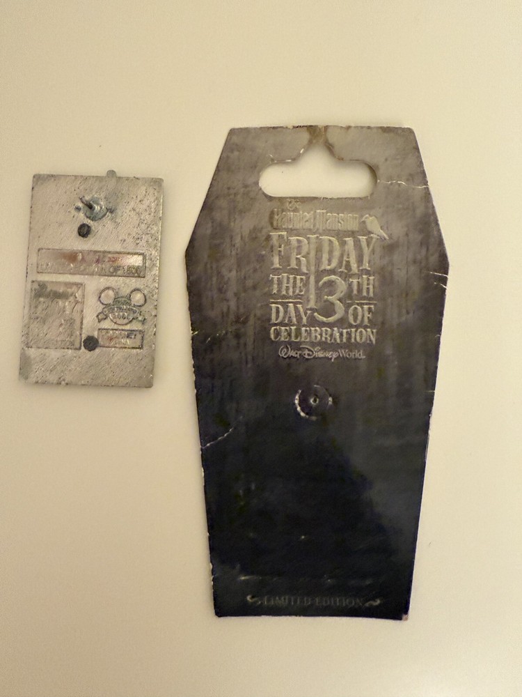 This Disney trading pin features a Friday the 13th Ghost from the Haunted Mansion ride at Walt Disney World. Released in 2007 as a limited edition item, it is part of the Halloween-themed collection. Perfect for collectors of Disney memorabilia and fans of the spooky Haunted Mansion franchise, please see photos