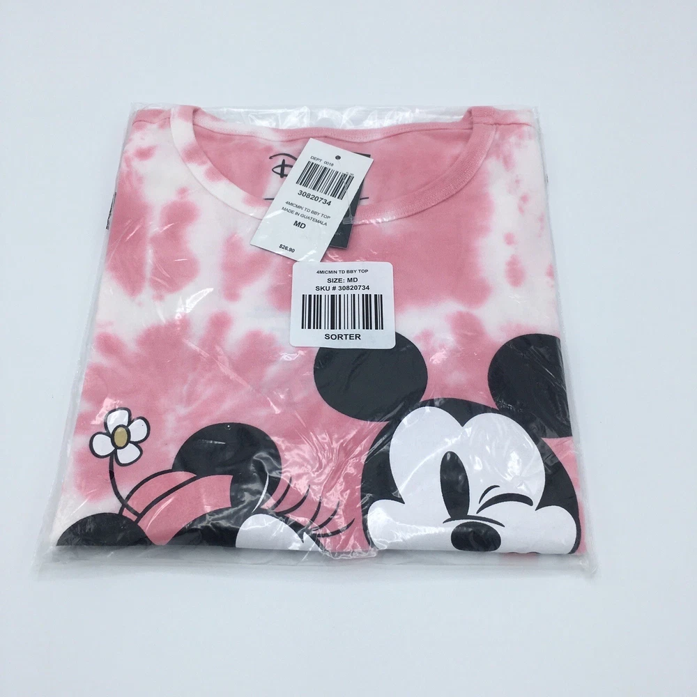 Disney Her Universe Mickey Minnie Kiss Tie Dye Crop Women T-Shirt Pink Medium. Condition is New. Shipped with USPS Ground Advantage.