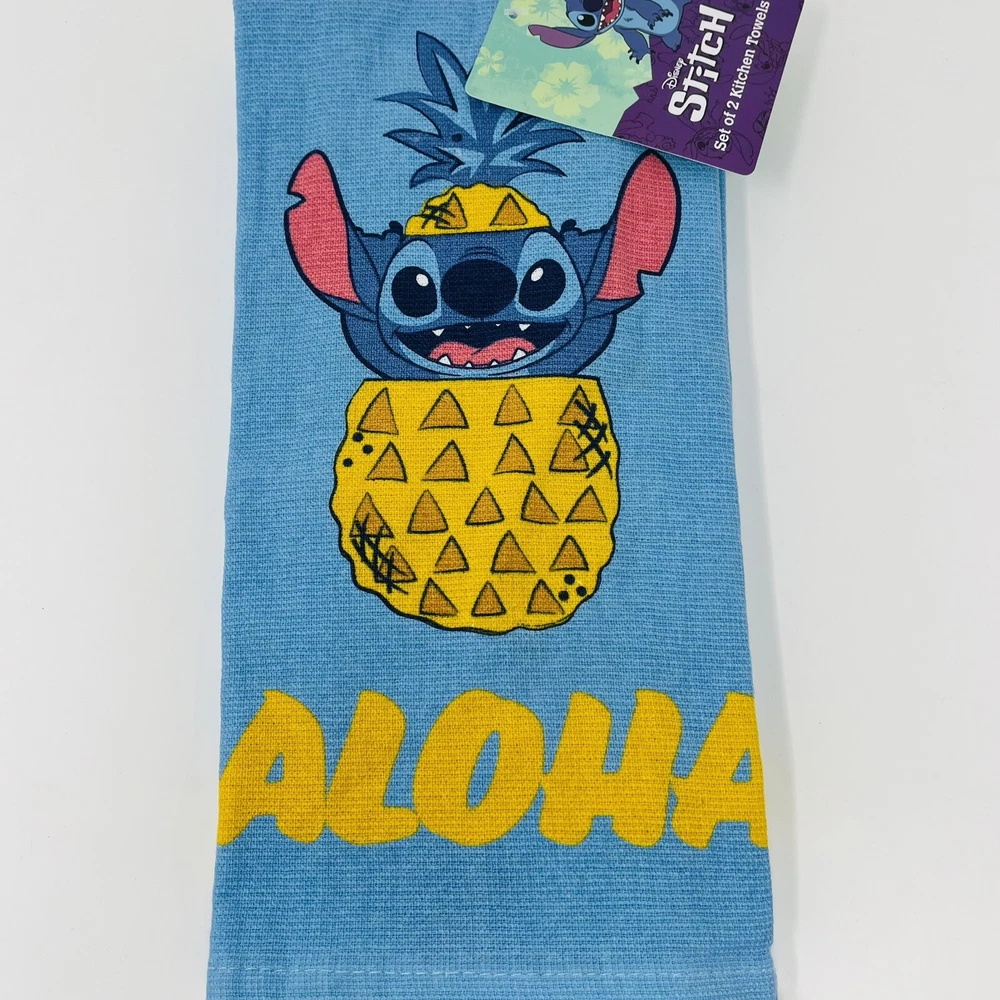 Disney Lilo & Stitch 2 Pack Hand Kitchen Bathroom Towels Aloha Pineapple NWT