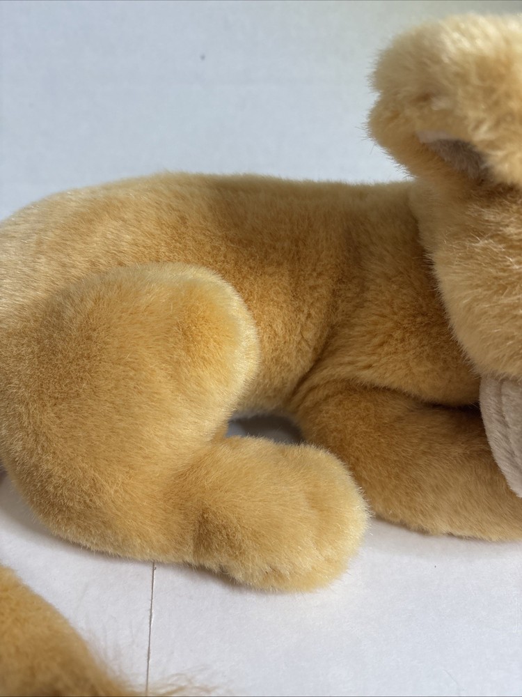 This adorable 14" plush Baby Simba stuffed animal from Walt Disney World Disneyland is a must-have for any Lion King fan. With its soft and cuddly texture, it's perfect for snuggling or adding to your Disneyana collection. The plush toy features Simba's iconic look with its orange and red fur, and is made with high-quality materials for long-lasting play or display. Whether you're a collector or just looking for a fun toy, this Baby Simba plush is sure to delight fans of all ages. It's the perfect gift for any Lion King enthusiast or a charming addition to your own collection. Get ready to roar with joy with this delightful Disney plush toy!