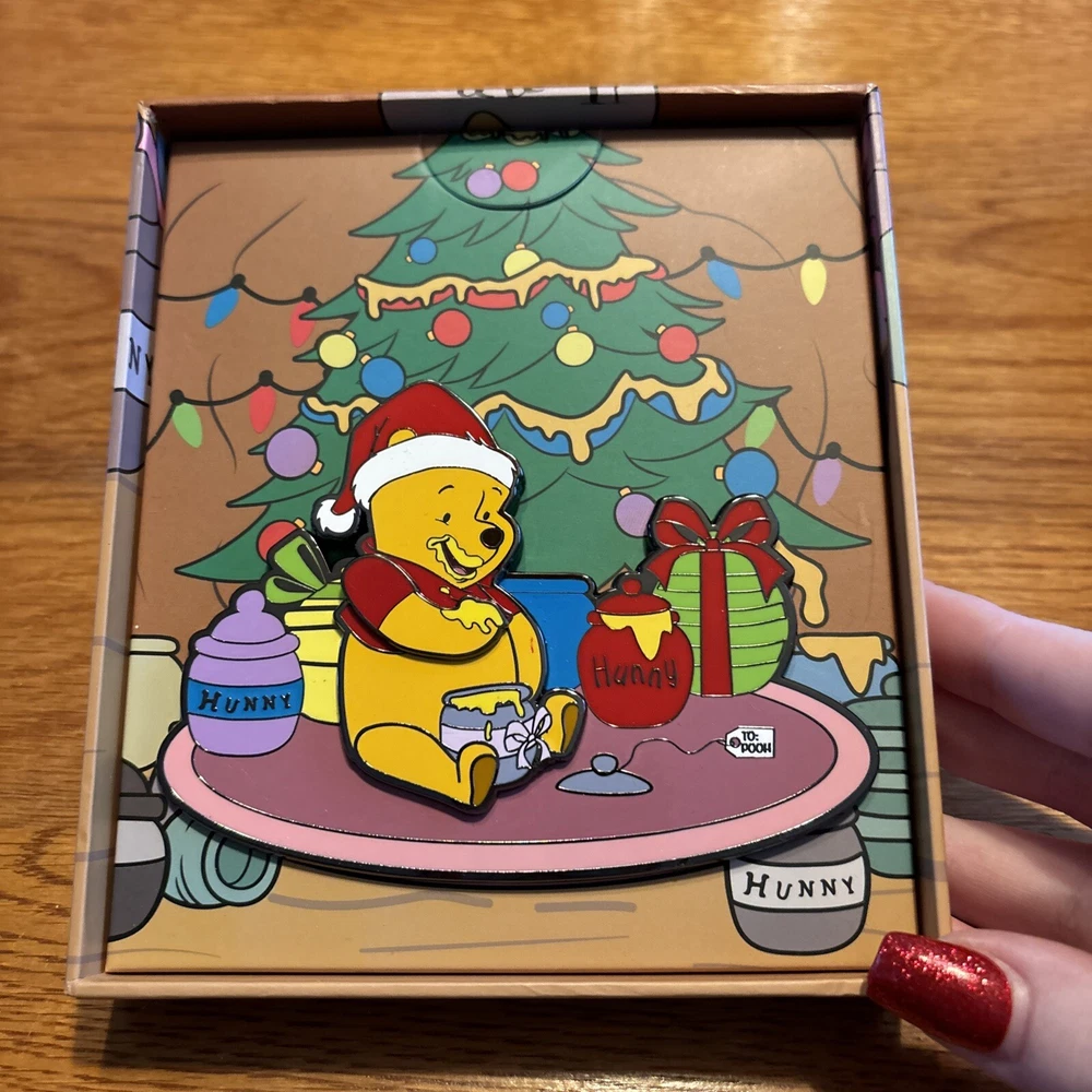 Disney Loungefly Winnie The Pooh Honey Present Christmas- 3” Sliding Pin Limited Edition 1,400