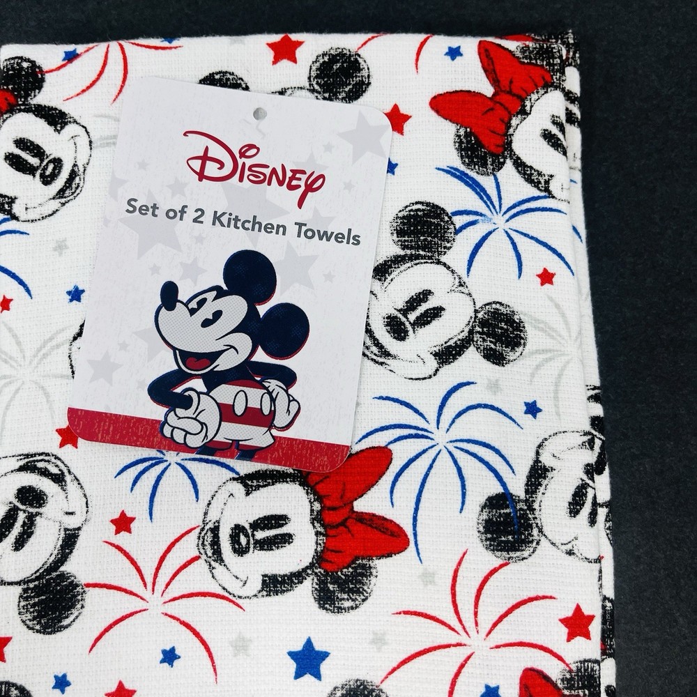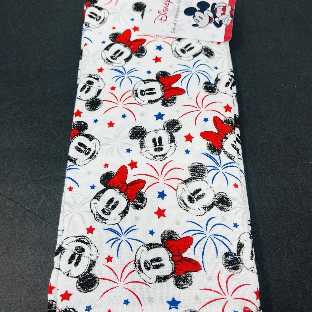 Disney Mickey Minnie Mouse 2 Pack Kitchen Hand Towels July 4th Fireworks NEW