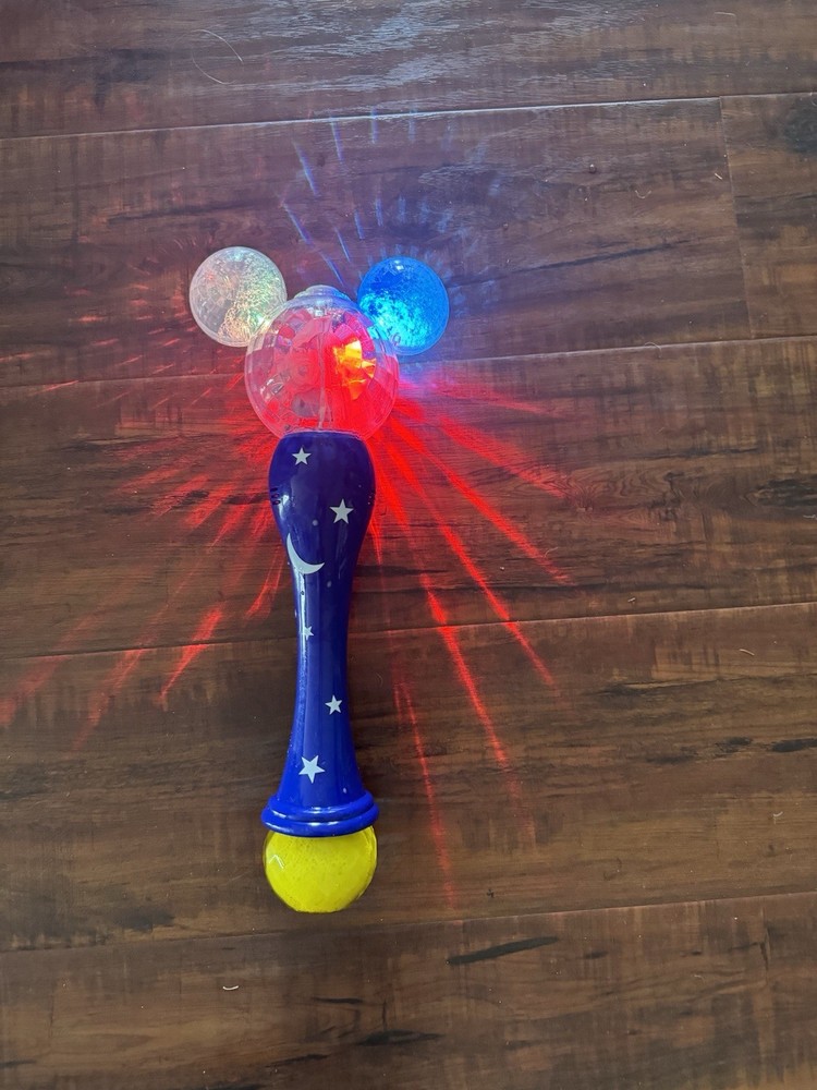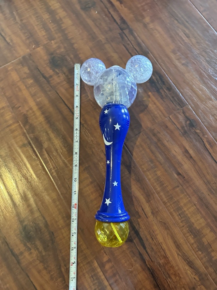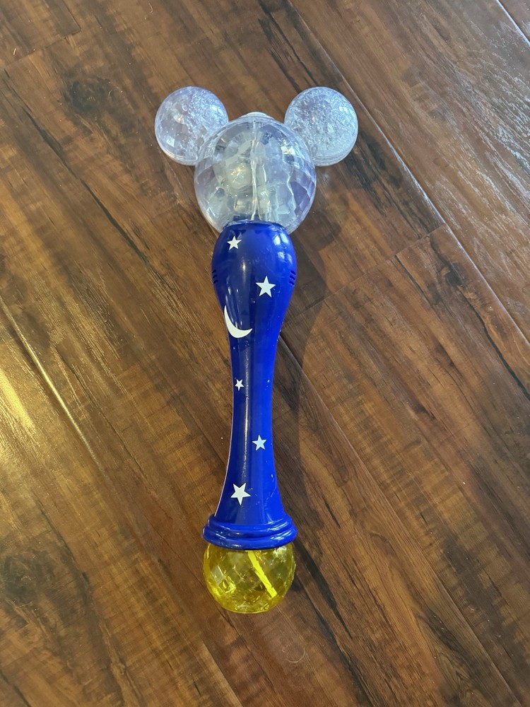 The Disney Parks Mickey Mouse Sorcerer’s Apprentice Light-Up Bubble Wand is a contemporary collectible theme park souvenir featuring the beloved Mickey Mouse character. This magical wand is sure to delight Disney fans of all ages with its light-up bubbles, making it a fun and interactive addition to any Disneyana collection. Made by Disney in China, this officially licensed product stays true to the iconic theme park experience with its high-quality design and attention to detail. Perfect for fans of Mickey Mouse and the Disney franchise, this unique bubble wand is a must-have for any Disney enthusiast.