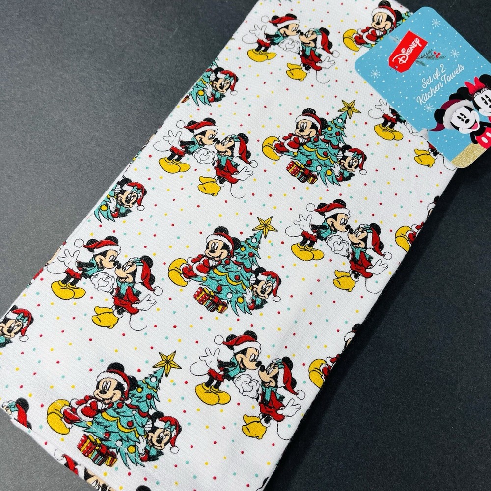 Disney Mickey Mouse 2 Pack Hand Kitchen Towels Christmas Tree Polka Dots Minnie