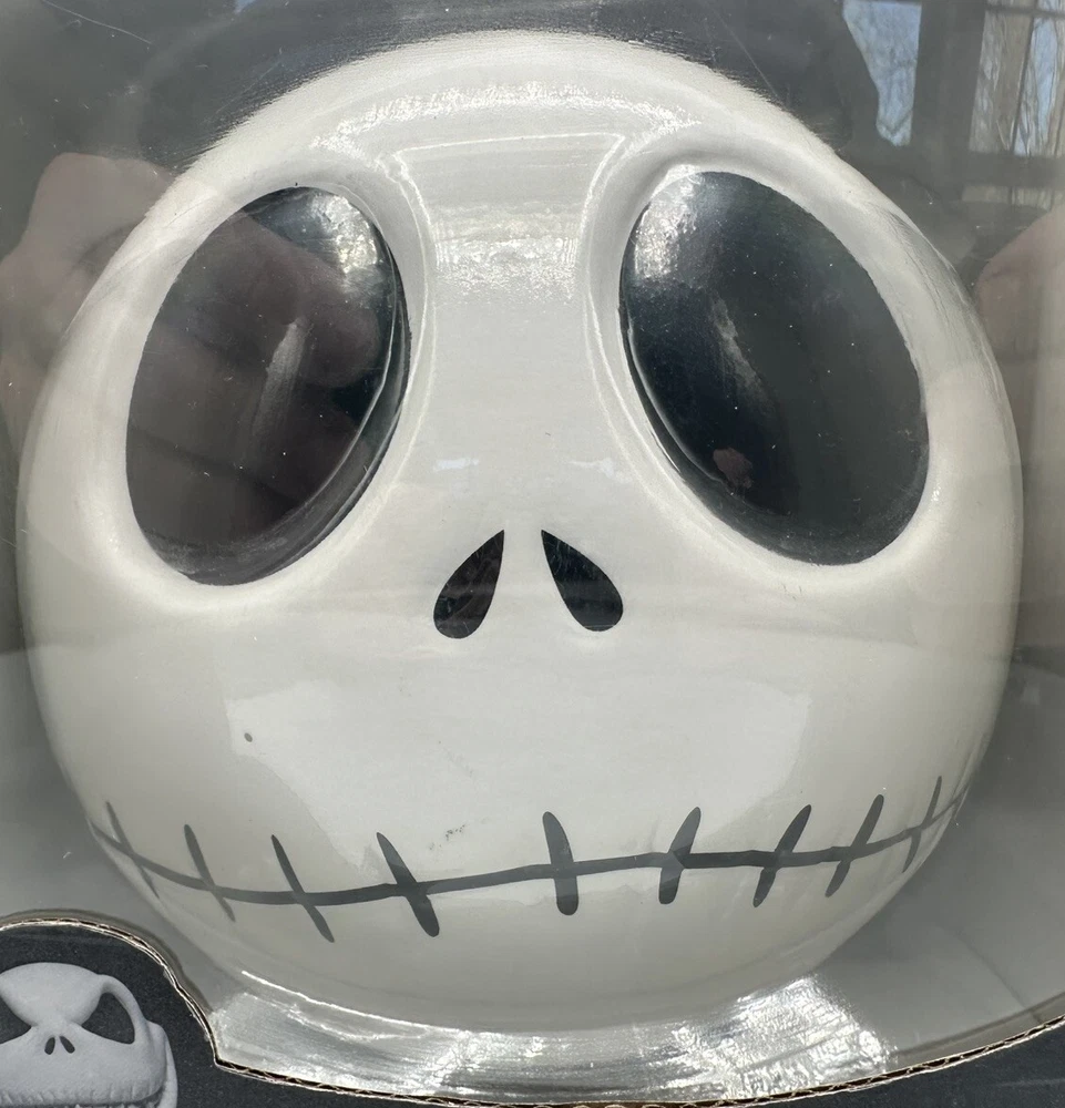 This Disney Nightmare Before Christmas Jack Skellington Head Ceramic Coin Bank is a collectible item featuring the iconic character from the popular franchise. Manufactured in China, this bank is designed for contemporary Disneyana collectors. The ceramic bank is brand new and perfect for fans of the Nightmare Before Christmas.