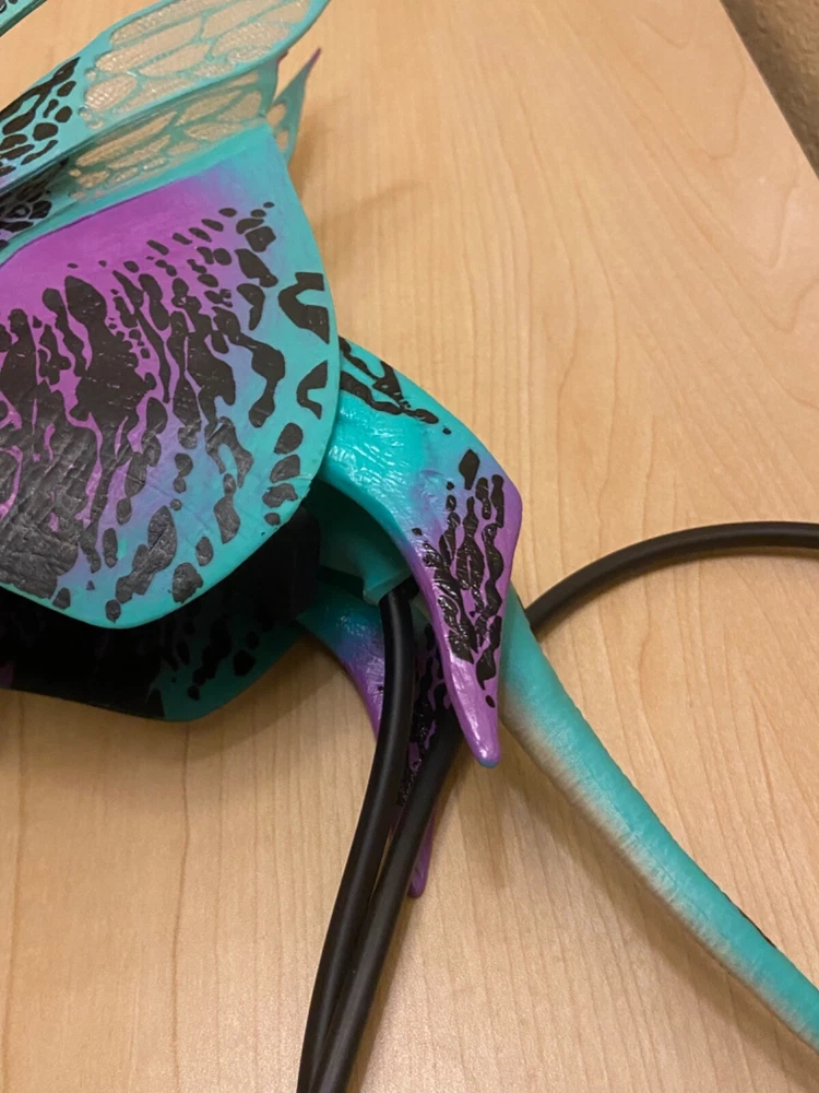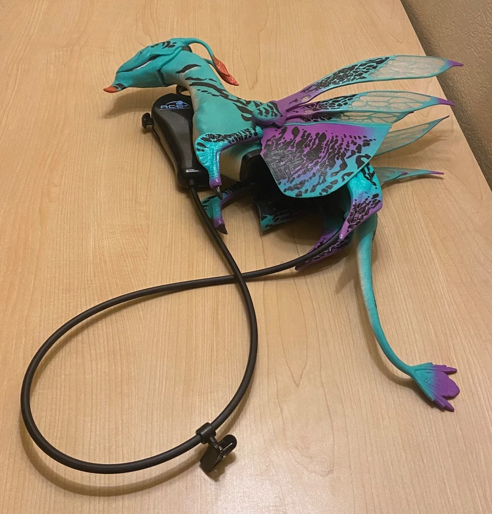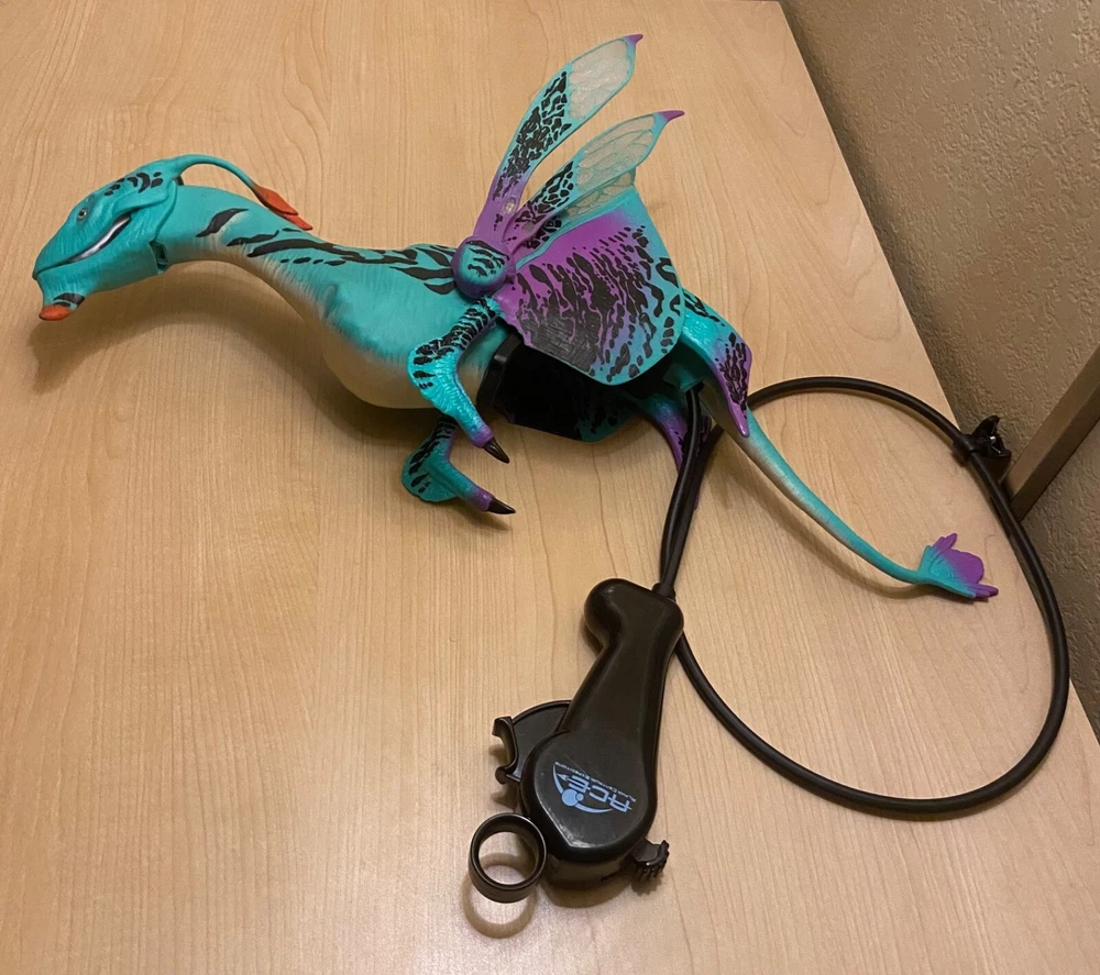 TAKES TWO AAA (Triple A) Batteries. SEE PHOTO FOR LOCATION of ON & Off Switch which you must remove or move or slide magnet & is located above belly & is a little hidden under silicone skin: Again see photo for location. SEE VIDEO Disney Pandora Avatar ACE Banshee Rookery Dragon…Blue, Turquoise, Black, Purple, orange with yellow eyes, Interactive Puppet with Magnet Excellent Used Condition!! WORKS GREAT!! SEE VIDEO Buyer pays estimated calculated shipping & handling