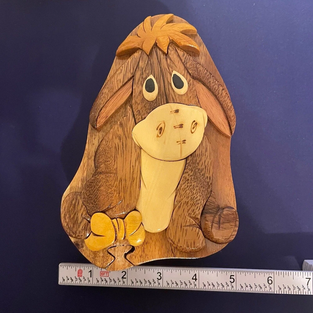 This adorable Eeyore puzzle box is a must-have for Disney fans! The wooden craftsmanship is solid, and the felt lining keeps small treasures safe. It’s both whimsical and functional—perfect for gifting or keeping jewelry organized. The hidden compartment adds a fun surprise, making it even more special. Absolutely love it!