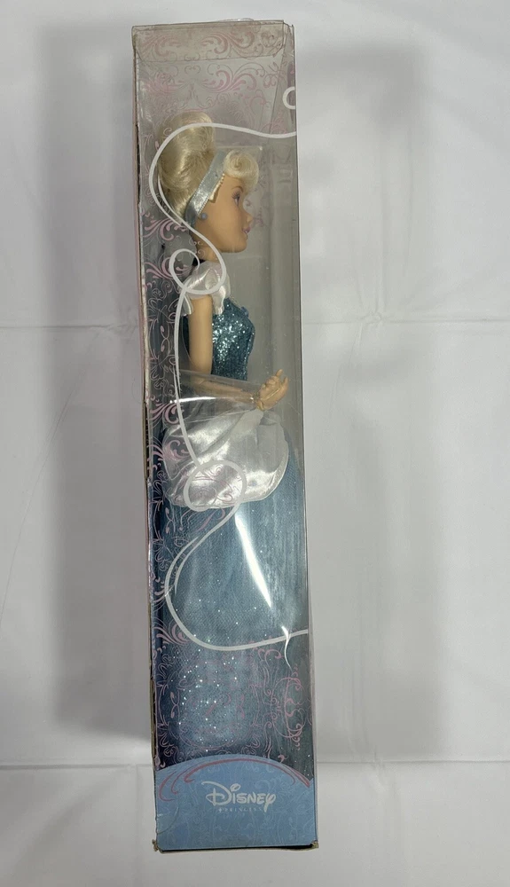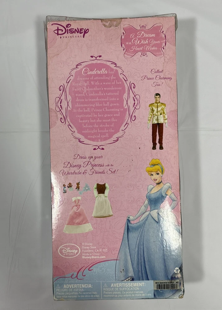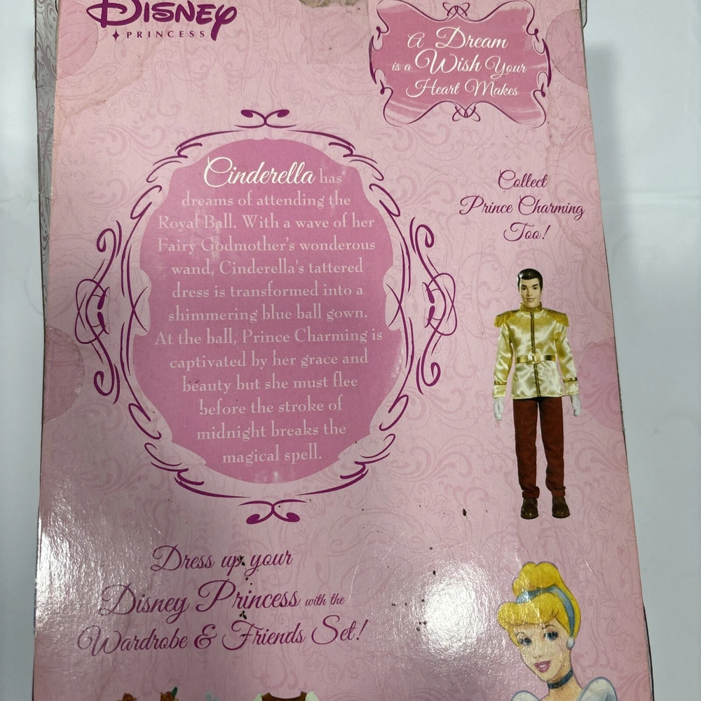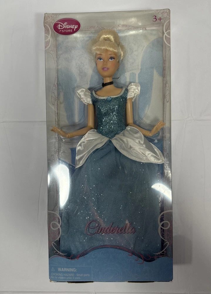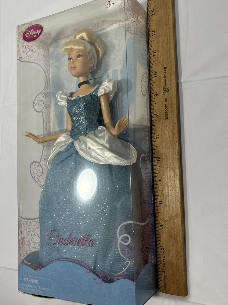Add a touch of magic to your child's playtime with this Disney Princess Cinderella Doll from the Classic Collection. This 12-inch fashion doll features blonde hair and beautiful blue eyes, and is made of durable plastic material. Perfect for kids aged 3 and above, this original and licensed reproduction doll is a must-have for any Cinderella fan. The set includes the doll itself, and is part of the Cinderella Barbie product line. Let your child's imagination run wild with this beloved Disney character. Please note this doll has never been played..still remain in very good condition ..the box has some small scratches and spots due to movement..please before purchase feel free to reach out to us for any questions or to post more pictures 😊