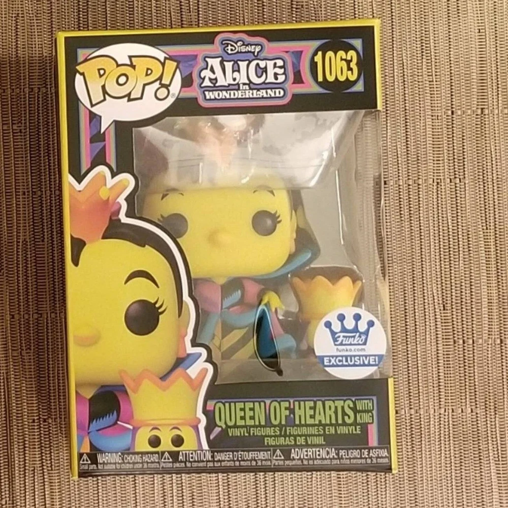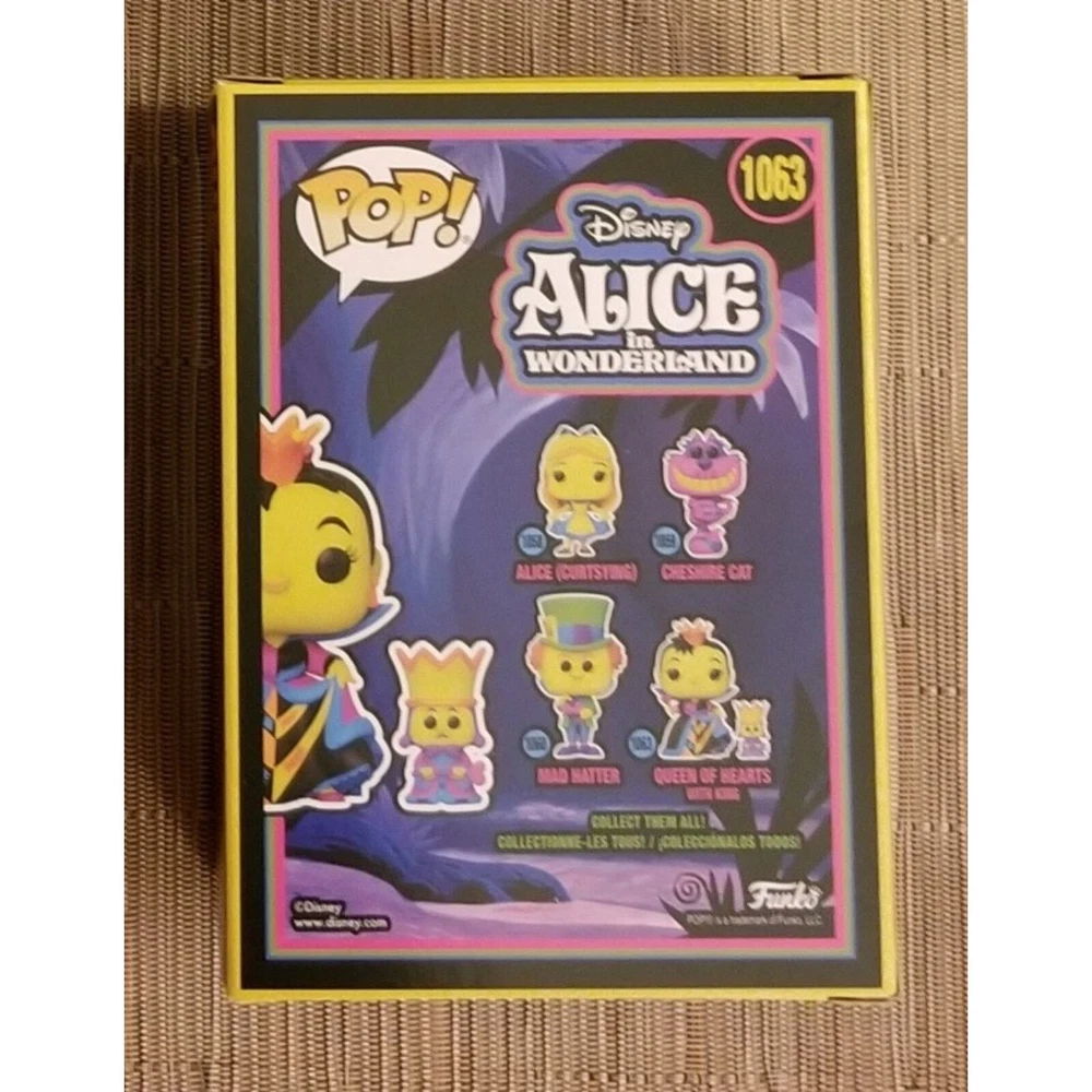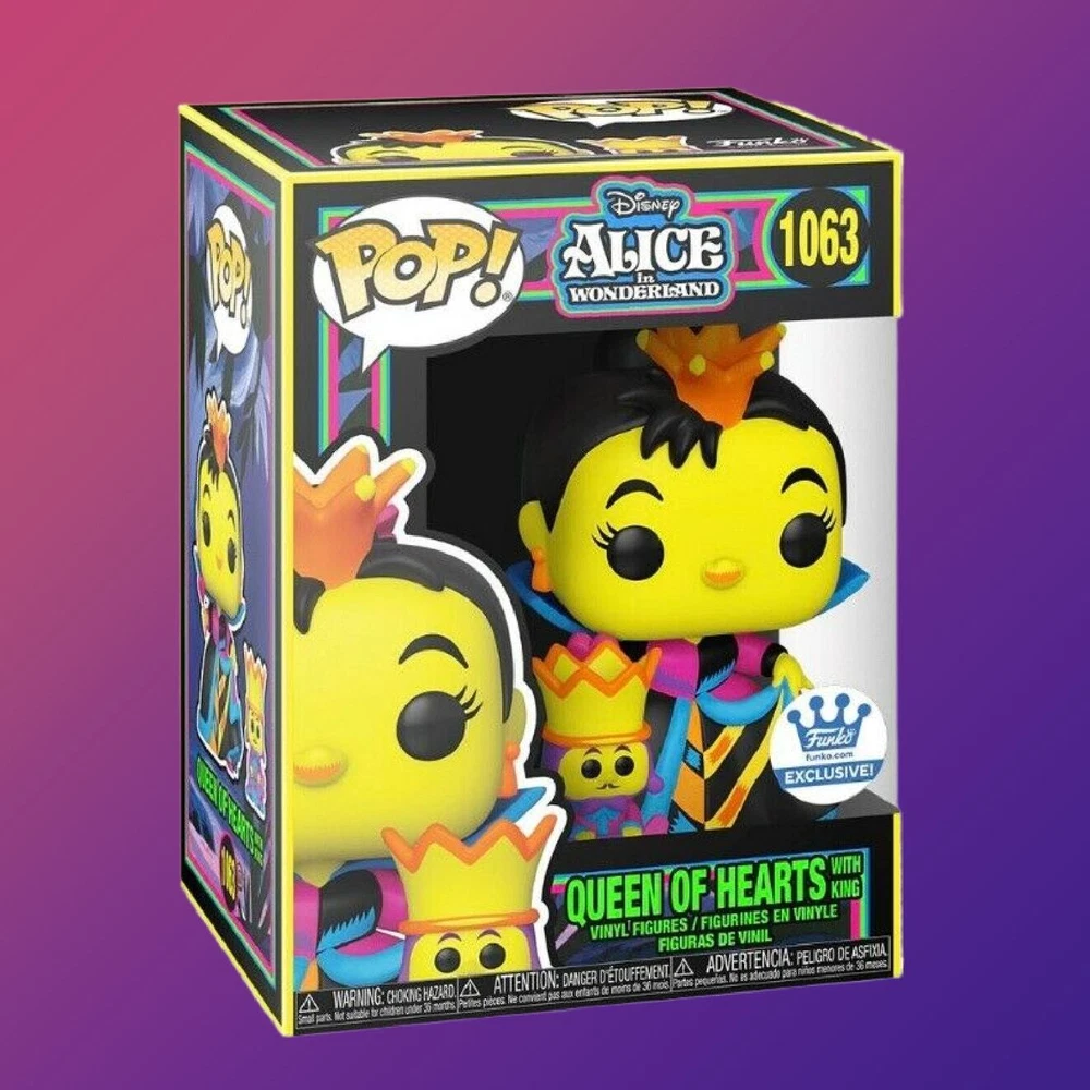 Disneys Alice in Wonderland Queen of Hearts blacklight exclusive Funko Pop. In mint or near mint box condition. Will ship fast and with care!
