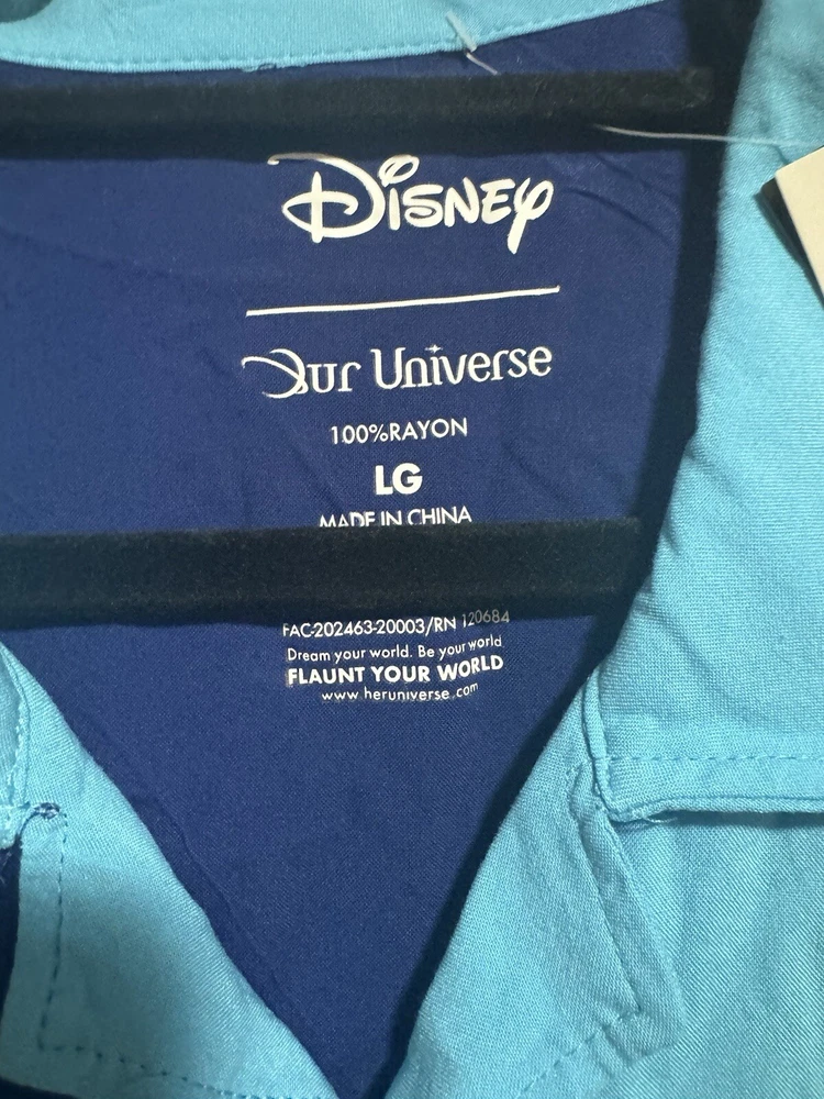 Disney Shirt Men Large Blue Rayon Button Up Our Universe Ohana Lilo Stitch Adult. Condition is New with tags. Shipped with USPS Ground Advantage.