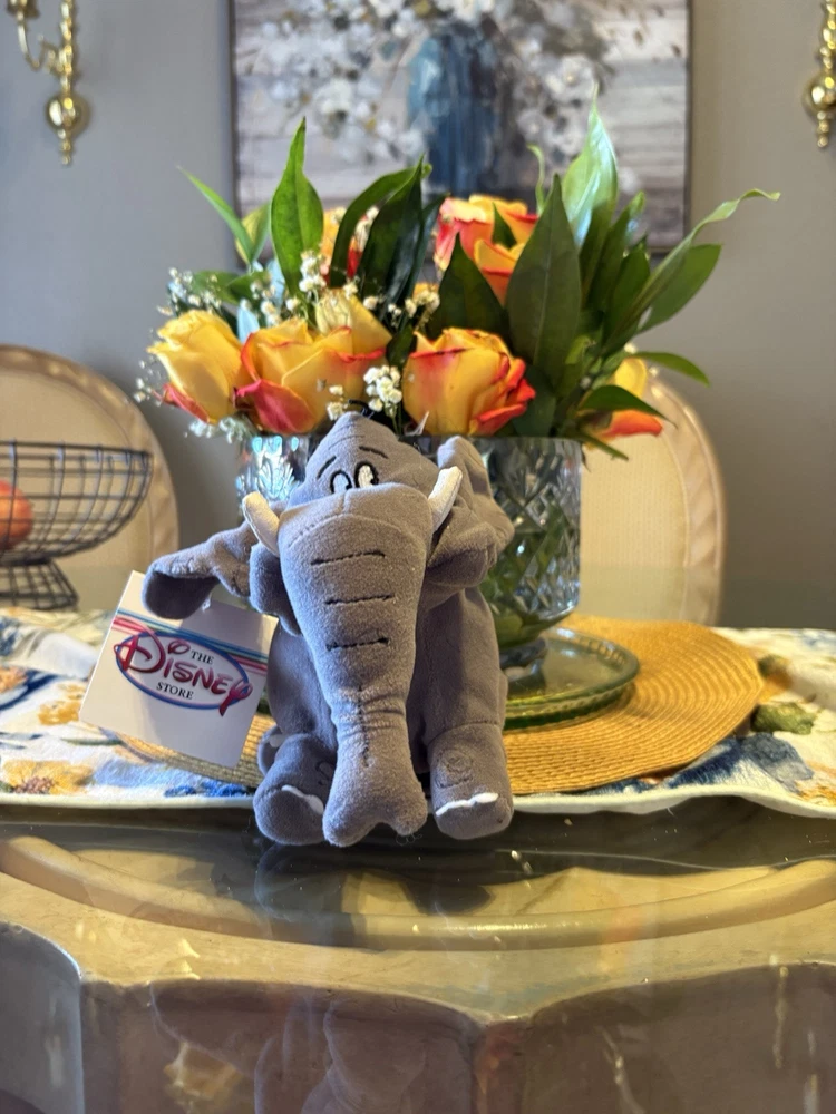 This is a Disney Store plush toy featuring SHEP The Elephant from the George of the Jungle franchise. The bean bag plush measures 8 inches and is new with tags (NWT). It is part of the Disney collection and is perfect for fans of the movie or television show.