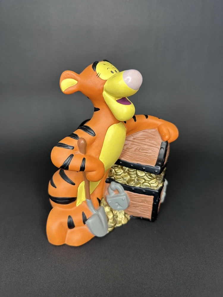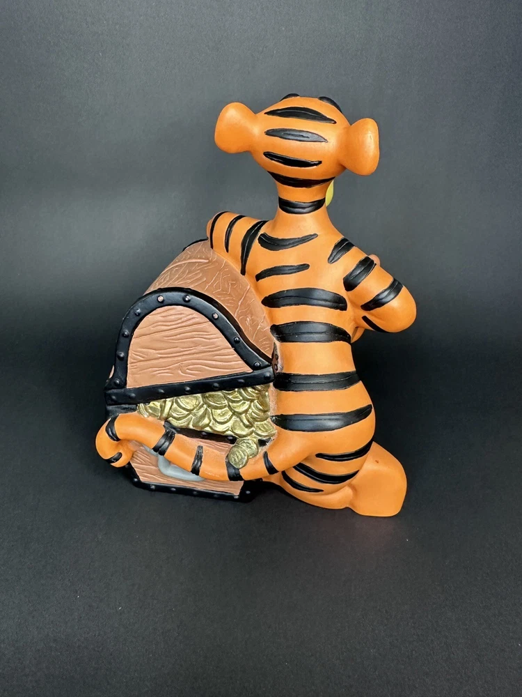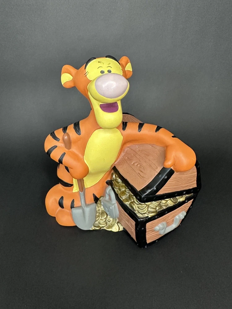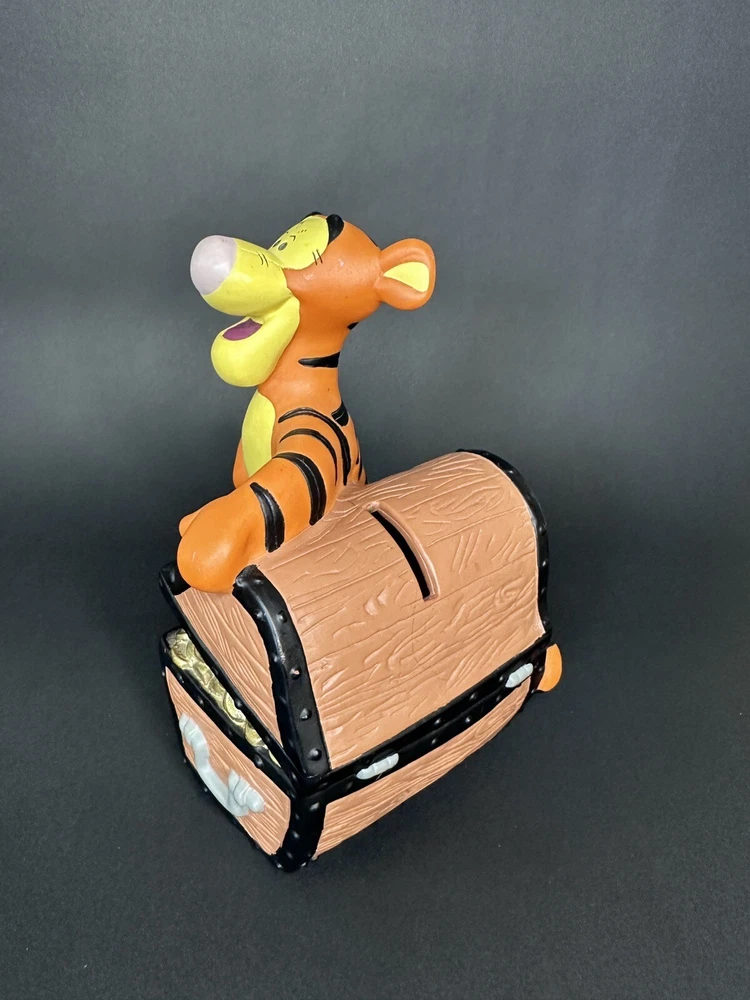 Disney Tigger Winnie the Pooh Buried Treasure Chest Plastic Coin Piggy Bank Item does have some scuffs and scratches from prior use, nothing major. Bank stopper included. #h