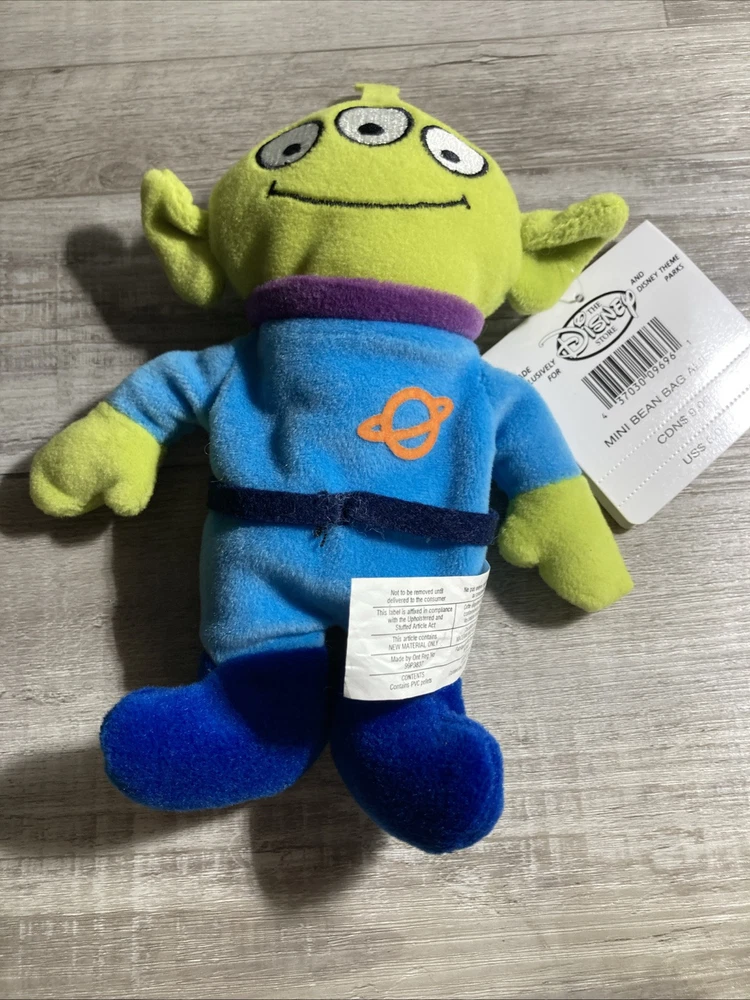 The Disney Store Toy Story Mini Bean Bag Plush features characters from the Toy Story franchise, specifically Buzz Lightyear, Rex, Hamm, and the Alien. Each plush is 6 inches in size and is made in a mini bean bag style. This collectible set is part of the Disneyana category and is perfect for fans of the Disney brand and the beloved Toy Story characters. These plush toys are sure to bring joy and nostalgia to any collection or display.