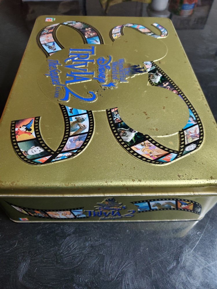 Wonderful World of Disney Trivia 2 The Sequel Board Game Complete Mickey Mouse Tin is little beat up but game in game shape and is complete