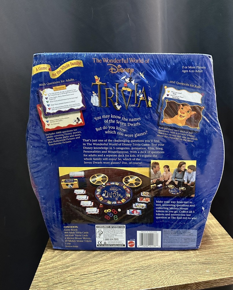 This vintage 1997 trivia board game is designed for 2 or more players and comes in a metal tin that has not been removed from the box which adds to its collectible value. The game board features a fantasy theme from the beloved Disney franchise and is perfect for both boys and girls & kids and adults.