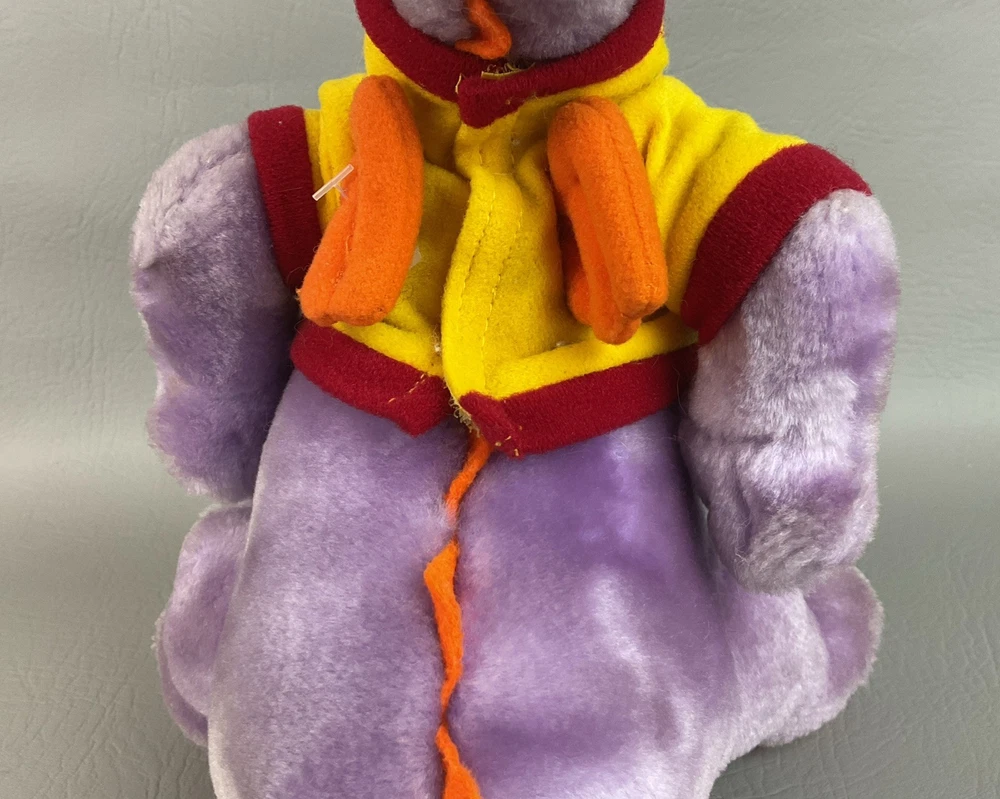 This Disneyland Figment Purple Dragon Plush is a vintage item from the 1980s, measuring 10 inches in size. It features the beloved character Figment, who is part of the Disney franchise. The plush toy has not been modified and is in great condition for its age, making it a perfect collectible for Disney fans and collectors of plush toys. The plush toy was manufactured in contemporary times, specifically in 1982, and is a part of the Disneyana collectibles category. This item is perfect for those who love Disney and want to add a unique and rare piece to their collection. Get your hands on this vintage Disneyland Figment Purple Dragon Plush today!