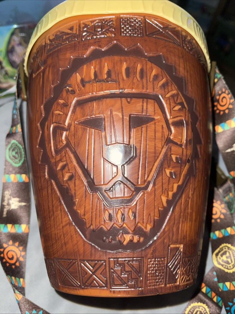 Experience the magic of Disney with this collectible Lion King drum souvenir popcorn bucket. Perfect for any Disney fan, this brand new bucket features colorful artwork of Simba, Rafiki, and other beloved characters from the classic animated film. Made in the United States and inspired by Disneyland's 2019 The Lion Guard parade, this item is a must-have for any Disneyana collector or fan of the Lion King franchise. The contemporary design of this souvenir bucket makes it a unique and memorable addition to any collection. Whether used for storing popcorn or as a decorative piece, this Lion King drum is sure to bring joy and nostalgia to any Disney enthusiast.