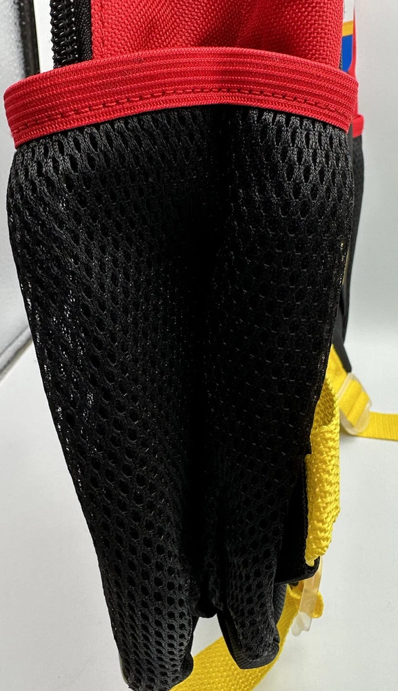 This colorful and spacious backpack features a beloved Disney character, with a fun and playful Mickey Mouse pattern. The bag is made from recycled materials and has adjustable straps for comfortable wear, making it perfect for travel, casual use, parties, or activewear. The bag measures 16 inches in height, 11 inches in width, and 8 inches in depth, with a convenient zipper closure and shoulder strap handle. Ideal for unisex kids, this Disney Junior backpack is brand new with tags and part of the Bioworld product line. Get yours today and show off your love for Mickey!