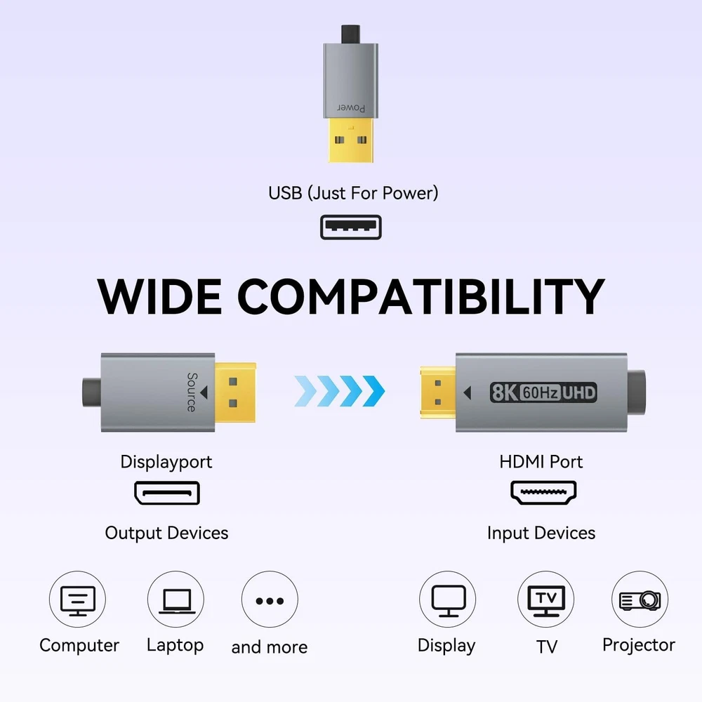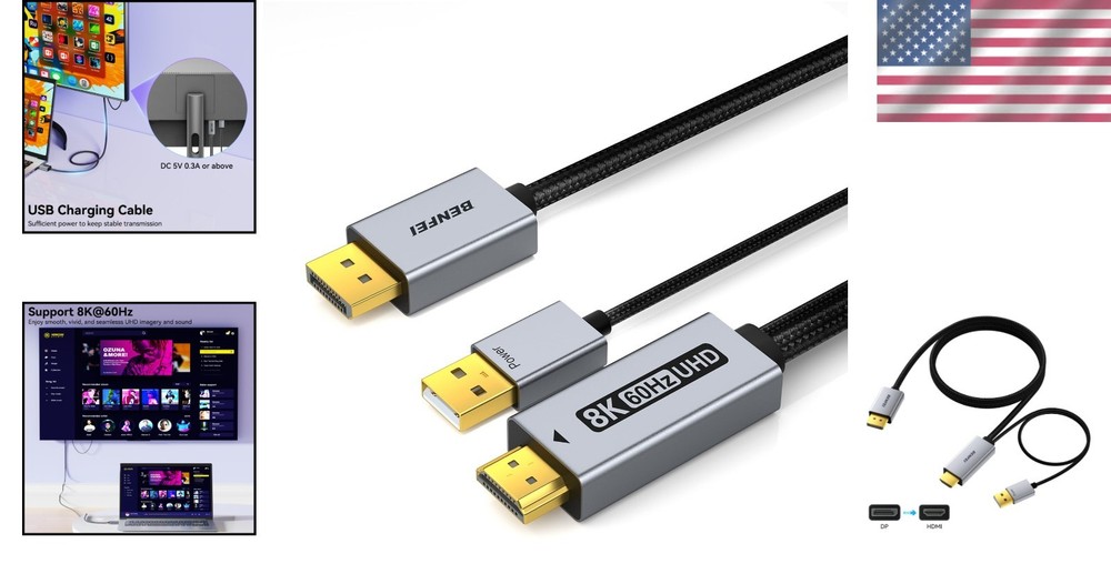 DisplayPort 1.4 to HDMI 2.1 Cable - 6ft, Ideal for Gaming & Entertainment ‹ › ‹ › ‹ › ‹ › ‹ › ‹ › ‹ › ‹ › ‹ › DisplayPort 1.4 to HDMI 2.1 Cable - 6ft Ideal for Gaming & Entertainment Stunning 8K Ultra HD Experience breathtaking visuals with this cutting-edge DisplayPort 1.4 to HDMI 2.1 cable, designed for the ultimate gaming and entertainment experience. It supports resolutions up to: 8K (7680x4320)@60Hz 4K (3840x2160)@240Hz/165Hz/144Hz/120Hz/60Hz 2K (2560x1440)@165Hz/144Hz/120Hz 1080p@165Hz/144Hz/120Hz Every frame is displayed with stunning clarity, processing each signal source flawlessly. The cable also supports Dynamic HDR and DSC 1.2 , ensuring compatibility with HDCP 2.3 for enhanced content protection. Immersive Audio-Visuals Dive into immersive surround sound and vibrant HDR visuals. With a refresh rate of 4K@240Hz , this cable eradicates lag and frame drops, perfect for video playback, FPS gaming, and AAA titles. The enhanced audio signal control provided by eARC adds another layer of sophistication to your entertainment experience. Reinforced Material - Anti-Interference Design Crafted with a smart chip and 30AWG copper core, this cable features multi-layer shielding that guarantees stable signal transmission. Say goodbye to screen tearing, ghosting, and audio/video desynchronization. The non-locking plug design protects your devices during insertion and removal, while the one-piece aluminum alloy housing and 24K gold-plated connectors ensure durability and a reliable connection. Plug and Play - Hassle-Free Convenience With fully plug-and-play functionality, there are no drivers required—saving you time and enabling swift DisplayPort to HDMI conversion. Compatible with popular monitor brands like BenQ, Dell, HP, Acer, Alienware, and Samsung, it works perfectly with all DP, DP++, and DisplayPort++ supported GPUs. Note: Not compatible with hubs, docking stations, or KVM switches—only supports direct connections from DisplayPort source devices to HDMI display devices. 18 Your satisfaction is our priority. Enjoy peace of mind with the exclusive 18- , and experience friendly and accessible customer service ready to assist you with any inquiries or issues. Elevate your audio-visual experience with the ultimate DisplayPort to HDMI cable—order yours today! Shipping Free & Fast Shipping - We offer free shipping to most of the USA with a normal delivery time of 3-7 days. However, due to the current situation, additional delivery time (up to 3 weeks) may be required for some items. Alternative Carriers - We may use alternative carriers (e.g. USPS, FedEx, UPS, etc.) to ensure your package arrives safely and on time. Due to the use of multiple carriers, we are unable to provide a tracking number automatically. Handling Time - Orders are processed and shipped within 1-2 business days of receiving cleared payment. Shipping Restrictions - Shipping to Alaska, Hawaii, Puerto Rico, Guam, and other US territories may incur shipping charges or delivery restrictions. Please contact us before ordering, or your order can be refunded/cancelled. State Restrictions - There may be restrictions based on your state of purchase. For example, certain items may not be shipped to California due to state regulations. Contact for Tracking Updates - If you require tracking updates or have any concerns about the delivery of your order, please feel free to contact us, and we will be happy to assist you. Return 30-Day Hassle-Free Returns - We want you to be completely satisfied with your purchase. If you are not, you can return the item within 30 days of receiving it for a full refund or exchange. Easy Return Process - To start a return, simply contact us and we will provide you with a prepaid return shipping label and detailed instructions. Restocking Fee - There are no restocking fees for returns. However, the buyer is responsible for return shipping costs if the return is not due to a seller's error. Refund Processing Time - Refunds will be processed within 5 business days of receiving the returned item in its condition. Payment We accept all major credit cards, PayPal, and Apple Pay for your convenience. Your payment information is secure and encrypted to ensure a safe and seamless transaction. Please complete your payment within 3 days of purchase to avoid any delays in shipping. Feedback Your feedback is extremely important to us. We strive to provide the best products and customer service possible. If you are satisfied with your purchase, please take a moment to leave us a positive review. If you have any concerns or issues with your order, please contact us before leaving negative feedback. We are committed to resolving any problems and ensuring your satisfaction. Contact Us If you have any questions or concerns, please feel free to out to our customer support team. You can contact us through the eBay messaging system. We are available Monday to Friday, 9:00 am to 5:00 pm EST, and we will do our best to respond to your inquiry within 24 hours. Buy it now and enjoy a pleasant shopping experience! Type: Details In Description