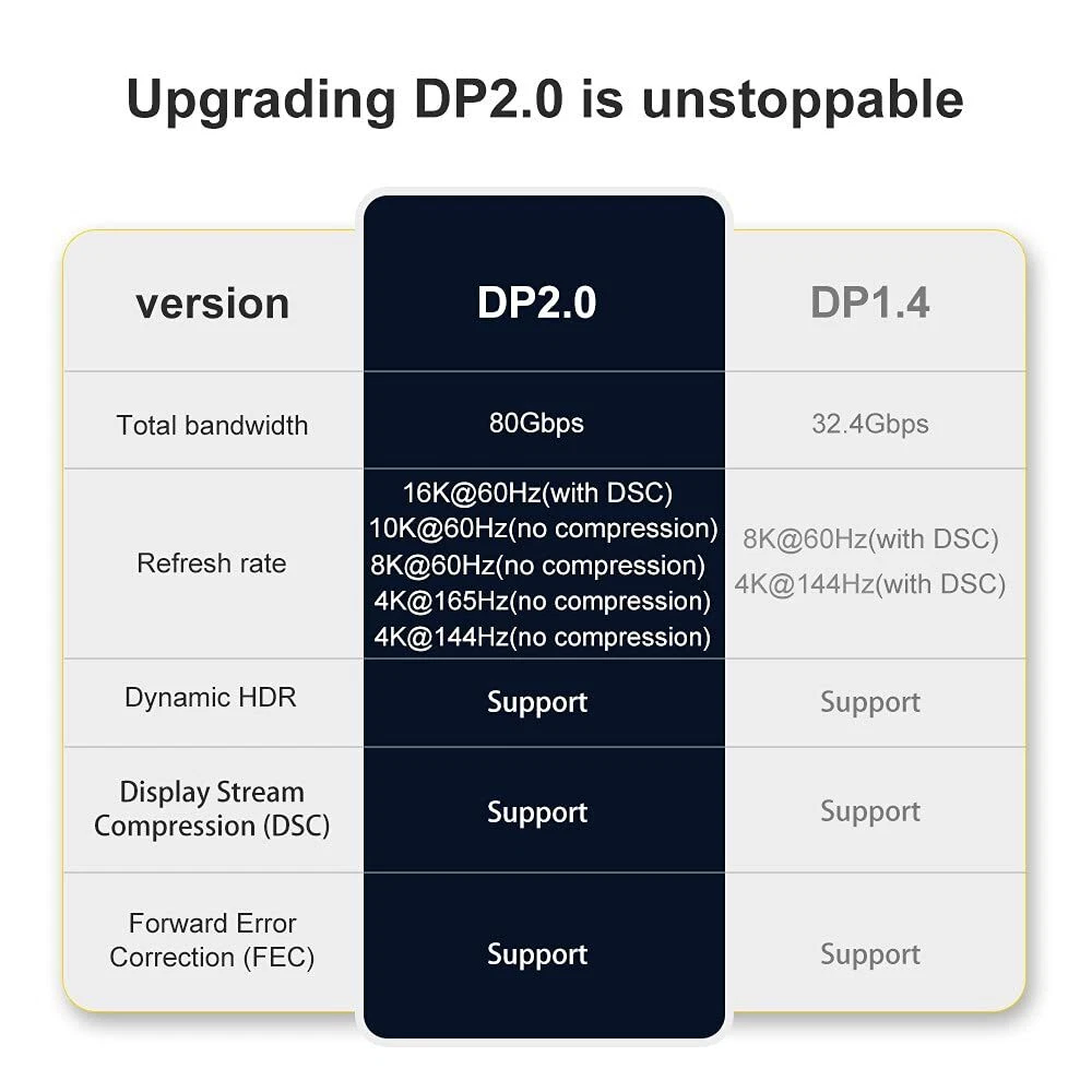 eBay Product Listing Welcome to Your Favorite My Store Your satisfaction is our top priority – Shop confidently 2m DisplayPort 2.0 DP to DP Cable 16K 60hz Cable Ultra-HD UHD DP 1.4 8K 121hz for PC Laptop HDTV Item Gallery Item Description 2m DisplayPort 2.0 DP to DP Cable 16K 60hz Cable Ultra-HD UHD DP 1.4 8K 120hz for PC Laptop TV support 16K @ 60Hz, 8K @ 120Hz, UHD, HDR Provides high-definition video transmission experience and 3D visual effects, audio and video simultaneous transmission. High-speed bandwidth reaches 80Gbps, DisplayPort 8K Cooper cable, bandwidth reaches 80Gbps, high-speed transmission without signal loss. Support single,dual,triple displays mode. Single display resolutions: 1) One 16K (15360x8640) display @60hz and 30 bpp 4:4:4 HDR(with DSC) 2) One 10K (10240x4320) display @60hz and 24 bpp 4:4:4 (no compression) Dual display resolutions: 1) Two 8K (7680x4320) display @120hz and 30 bpp 4:4:4 HDR(with DSC) 2) Two 4K (3840x2160) display @144hz and 24 bpp 4:4:4 (no compression) Triple display resolutions: 1) Three 10K (7680x4320) display @60hz and 30 bpp 4:4:4 HDR(with DSC) 2) Three 4K (3840x2160) display @90hz and 24 bpp 4:4:4 (no compression) When using only two lanes on the USB-C connector via DP Alt mode tp allow for simultaneous super speed can enable such configurations as: 1) Three 4K (3840x2160) display @144hz and 30 bpp 4:4:4 HDR(with DSC) 2) Two 4Kx4K (4096X4096) displays (for AR/VR headsets) @120hz and 30 bpp 4:4:4 HDR(with DSC) 3) Three QHD (2560x1440) @120hz and 24 bpp 4:4:4 (no compression) 4) One 8K (7680x4320) @30hz and 30 bpp 4:4:4 HDR(no compression) Special Features 2m DisplayPort 2.0 DP to DP Cable 16K 60hz Cable Ultra-HD UHD DP 1.4 8K 120hz for PC Laptop TV DisplayPort copper cable, DisplayPort 2.0 cable, support 16K high resolution 60hz support 16K @ 60Hz, 8K @ 120Hz, UHD, HDR Provides high-definition video transmission experience and 3D visual effects, audio and video simultaneous transmission. High-speed bandwidth reaches 80Gbps, DisplayPort 8K Cooper cable, bandwidth reaches 80Gbps, high-speed transmission without signal loss. Support single,dual,triple displays mode. Single display resolutions: 1) One 16K (15360x8640) display @60hz and 30 bpp 4:4:4 HDR(with DSC) 2) One 10K (10240x4320) display @60hz and 24 bpp 4:4:4 (no compression) Dual display resolutions: 1) Two 8K (7680x4320) display @120hz and 30 bpp 4:4:4 HDR(with DSC) 2) Two 4K (3840x2160) display @144hz and 24 bpp 4:4:4 (no compression) Triple display resolutions: 1) Three 10K (7680x4320) display @60hz and 30 bpp 4:4:4 HDR(with DSC) 2) Three 4K (3840x2160) display @90hz and 24 bpp 4:4:4 (no compression) When using only two lanes on the USB-C connector via DP Alt mode tp allow for simultaneous super speed can enable such configurations as: 1) Three 4K (3840x2160) display @144hz and 30 bpp 4:4:4 HDR(with DSC) 2) Two 4Kx4K (4096X4096) displays (for AR/VR headsets) @120hz and 30 bpp 4:4:4 HDR(with DSC) 3) Three QHD (2560x1440) @120hz and 24 bpp 4:4:4 (no compression) 4) One 8K (7680x4320) @30hz and 30 bpp 4:4:4 HDR(no compression) Our Guarantee To You We offer fast shipping, free delivery, and 100% customer satisfaction guarantee. Not satisfied? Return your item for free within 30 days. 30-Day Free Returns Shipping Details Items will be sent to your eBay address. Please verify before purchasing. Typical delivery within 3-7 business days. Professional shipping services used for all orders. We ship to the continental US (48 states only). Unable to deliver to Alaska, Hawaii, or territories. No APO/FPO or PO Box deliveries available. We use eco-friendly packaging Payment Options We accept these secure payment methods: All transactions securely processed through eBay's payment system. Simple Returns 30-Day Satisfaction Promise Contact us through eBay messages within 30 days of delivery. We'll provide return instructions and our address. Return the item in its original condition. We'll process your refund within 48 hours of receiving the item. Get In Touch Have questions about your order? Contact us through eBay messaging for prompt assistance. We typically respond within 24 hours.