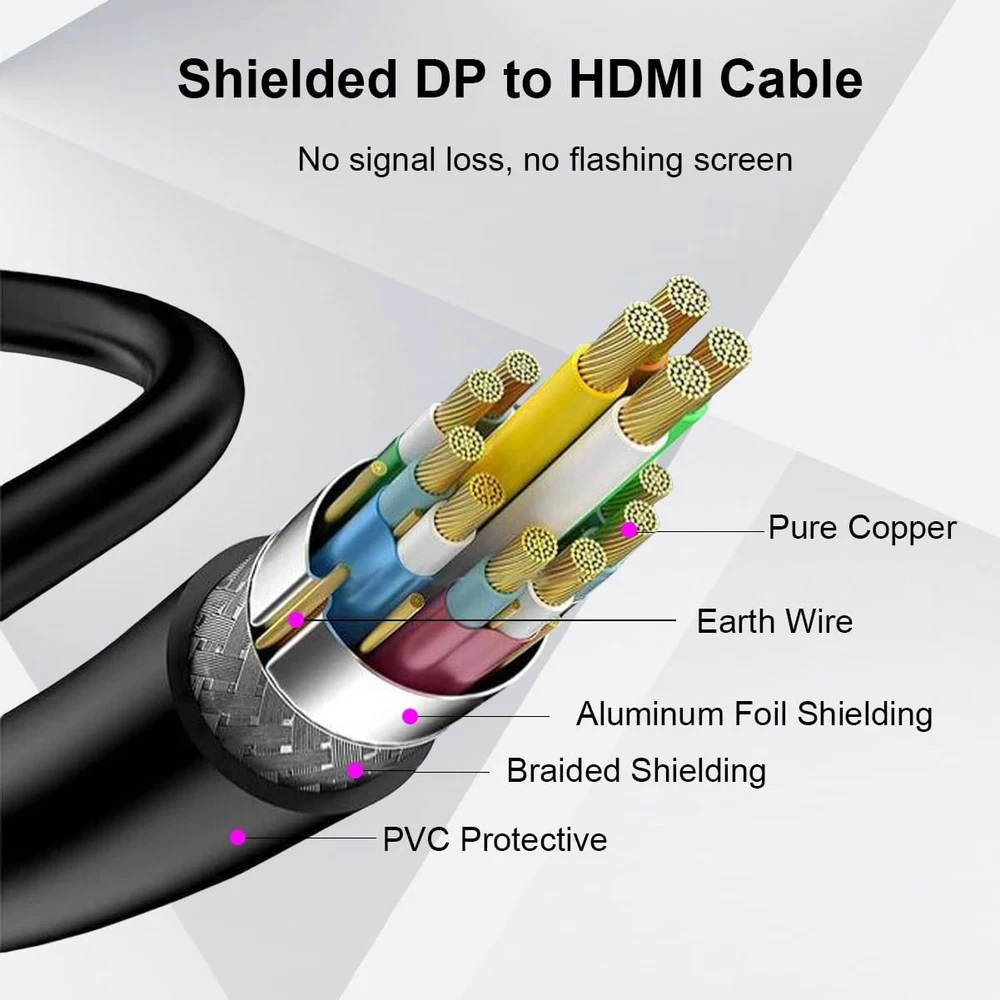 DisplayPort to HDMI Cable 6 feet 3-Pack 【Warranty】Only converts signal from DP to HDMI on one way. This displayport to hdmi cable is not bi-directional. All our products provide 3-year warranty, maintenance of life. 【All-purpose】Displayport to HDMI cable directly connects a DisplayPort (DP, DP++, DisplayPort++) equipped computer to an HDTV, monitor, or projector with HDMI input(Perfeclty for Dell, HP, Lenovo, ASUS, LG, etc).Please Note: This is Unidirectional, only converts signal from DisplayPort to HDMI. 【Two Modes】DP to HDMI cable support mirror mode makes your holiday photos and favorite films so much more interesting and enjoyable on the big screen, extended Mode you can double your workspace or enjoy a movie when doing some easy task. 【High Resolution】Supports video resolution up to 1920x1200 / 1080P@60HZ (Full HD) and flawless audio with uncompressed digital 7.1, 5.1 or 2 channels. 【No Flicker, No Black】UL 20276, Gold-plated connectors, bare copper conductors, and foil & braid shielding combine together to provide both superior cable performance and reliable connectivity.