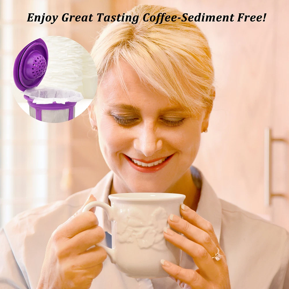 Perfect Brewing Companion: 's paper filters are super fine, trapping tiny particles like coffee grounds and sediments. This makes your coffee smoother and more enjoyable by capturing all the natural oils. Ergonomically Designed: Our paper filters are biodegradable and recyclable, helping you make a great cup of coffee while being kind to the environment. Easy Cleanup: After brewing, just toss out the used paper filter—no need to scrub or clean. This keeps your coffee maker mess-free and ready for the next brew. Top-Quality Construction: has been trusted for quality. Our paper filters help you brew a stronger, richer, and more flavorful cup of coffee every time. Fits Almost All Reusable Pods: ’s paper filters work with almost any reusable coffee pod, giving you flexibility and convenience no matter which pod you use.