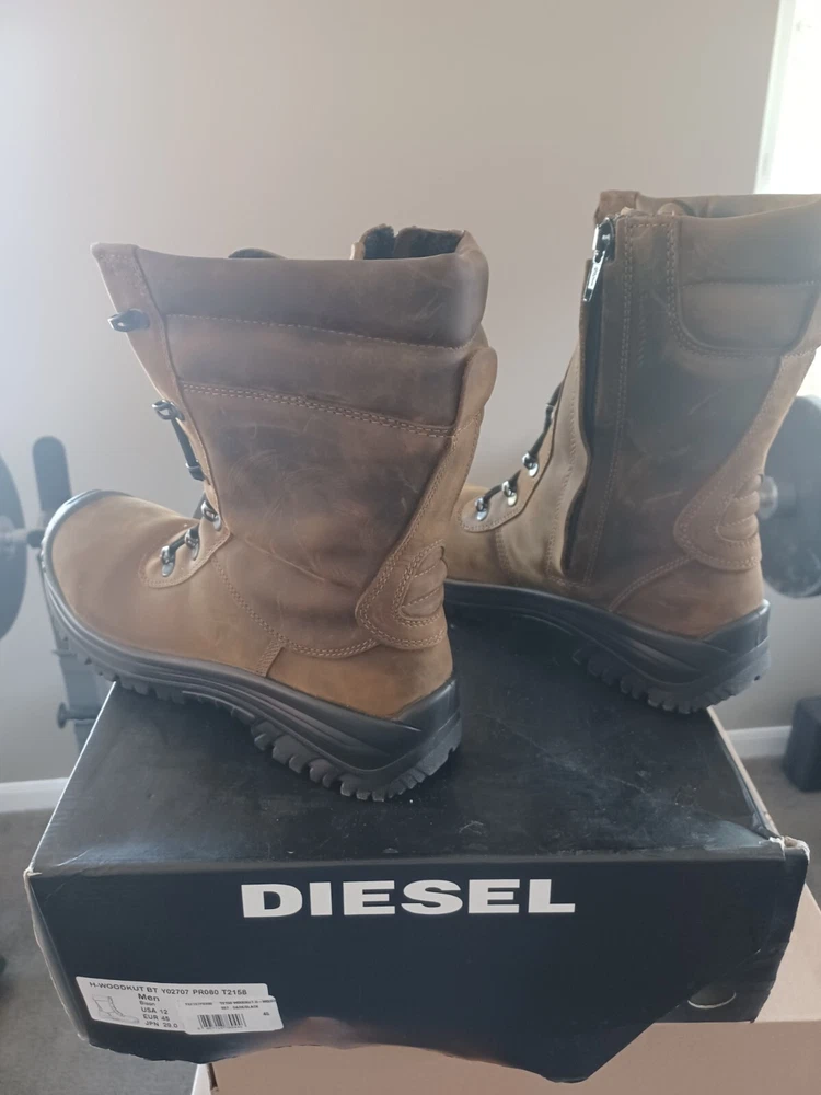 Diesel Leather Lace-Up Zipper Combat Boots Men's Sz EU 39 US 7 UK 6 CM 24 Unisex