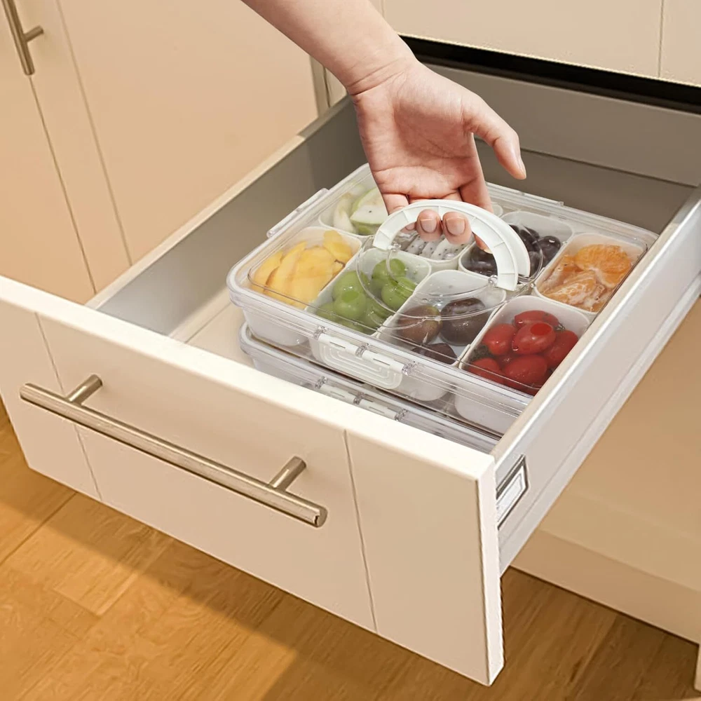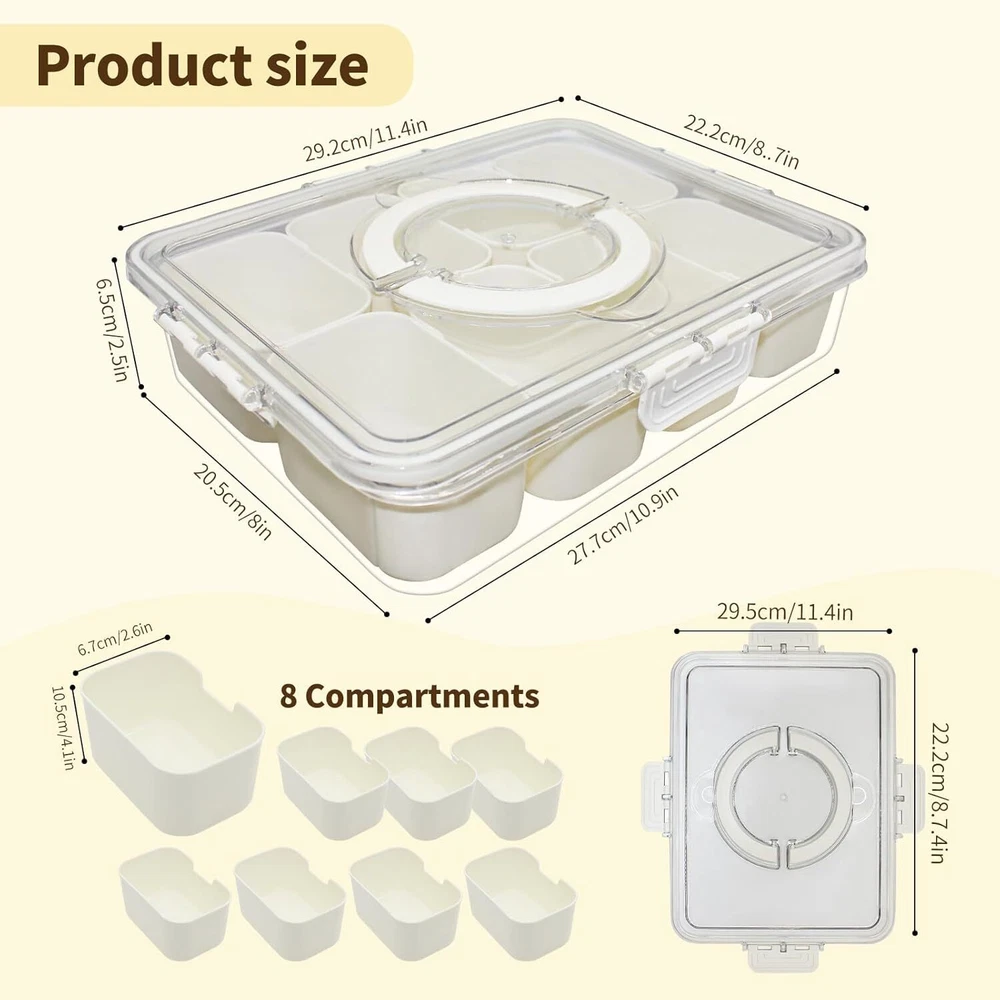 Divided Serving Tray with Lid and Handle -8 Compartment Snackle Box Charcuterie Container for Portable Snack Platters, Clear Organizer for Fruits Snacks, Perfect for Road Travel Picnic Party (2pcs) Product Details Brand: COLSUR Material: Rubber Product Dimensions: 12"L x 9"W x 3"H Special Feature: snackle box container fruit snacks snack box snack box container divided serving tray divided serving tray with lid snackle box serving tray snack containers snack tray at home salad bar candy box divided serving tray with lid and handle snackle box container fruit snacks snack box snack box container divided serving tray divided serving tray with lid snackle box serving tray snack containers snack tray at home salad bar candy box divided serving tray with lid and handlesnackle box container fruit snacks snack box snack box container divided serving tray divided serving tray with lid snackle box serving tray snack containers snack tray at home salad bar candy box divided serving tray with lid and handle See more Is Dishwasher Safe: Yes [Warning Tips] Not suitable for dishwashers, the outer transparent box and lid are made of food-grade PET. Avoid using in high-temperature dishwashers or microwaves, and do not store hot food to prevent deformation [Portable Snack Box] With handles, it is easy to carry and is perfect for outdoor adventures, picnics, parties or busy workdays. Stylish snack box deli container, suitable for you to travel with children, small gatherings/parties, store smaller crafts, etc. [Sturdy and Durable] Made of food-grade plastic for long-term use. There are 4 closing rings and rubber edges on the lid for sealing, ensuring that your wonderful journey will not be messy. Excellent beach essentials and accessories [8-compartment snack container] 8 easily removable boxes can meet your needs, perfect for portion control. Easily organize fruits, vegetables, snacks, spices and even salads! The chic divided snack tray with lid and ergonomic handle is easy to carry. Perfect for snacking on the go [Easy to Clean] The divided tray with lid and handle is easy to clean and maintain, and the transparent plastic material makes dirt and stains clearly visible, so you can easily wipe them with a damp cloth or sponge