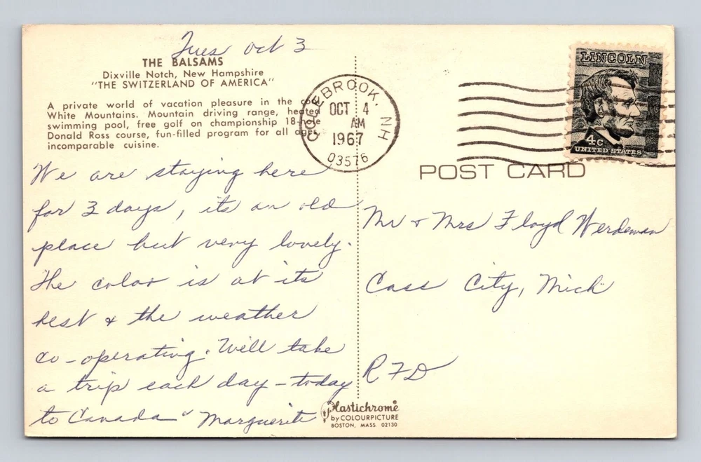 Unit of Sale: Single Unit Type: Printed (Lithograph) Region: New Hampshire Era: Vintage Subject: Cities & Towns Country: USA City: Dixville Notch Postage Condition: Posted Country/Region of Manufacture: Unknown Theme: Cities & Towns Original/Licensed Reprint: Original