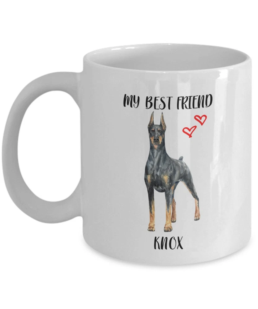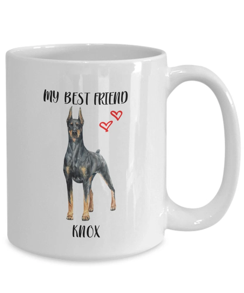 Dobermann Custom Pet Name Dog Name Personalized Dog Name Mug Coffee Mug Dog Lover Mug Pet Lover Gift Gift Idea Dog Mom Dog Dad Product Details.. This high quality 11oz. ceramic white mug has a premium hard coat that provides crisp and vibrant color reproduction sure to last for years. Perfect for all hot & cold beverages. The highest quality printing possible is used. It will never fade no matter how many times you wash it. Material: 100% Ceramic. Print both sides. Dishwasher and Microwave Safe. High Gloss + Premium White Finish. Printed in the U.S.A. Personalized & Custom. We support personalized and custom mug to add custom, when placing an order, you can add notes to the "order note" in shipping address section. Also you can contact us directly via message. Shipping Info. Ready to ship in 1 to 2 business days, All products are made-to-order and proudly printed in the United States. Shipped by USPS and DHL, You will receive your order in 5-7 days. Replace & Refund. All products are defective during shipping broken, chipped will be replaced free of charge. You are not satisfied with the product, we will refund 100% money to you. If any other issues arise, please do not hesitate to message, we would be more than happy to assist you.