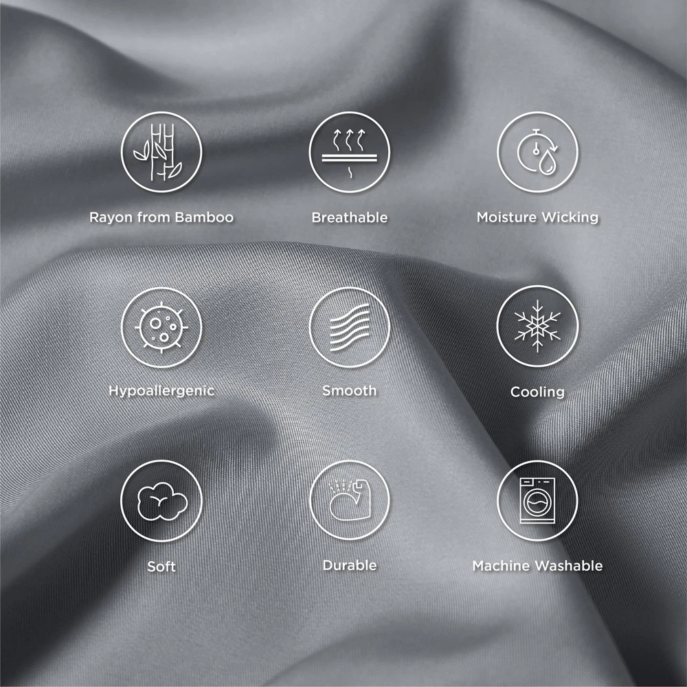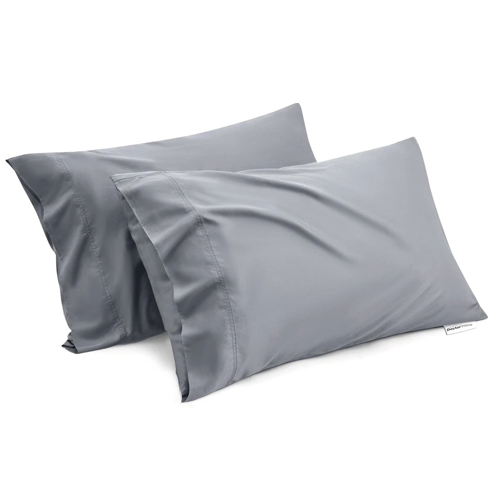Cool & Breathable: Made of rayon derived from bamboo, this temperature-regulating pillowcase set is cooler to the touch and more moisture-wicking than cotton. Ideal for hot sleepers and those looking for a cozy, dry night's sleep without overheating.Silk Soft: The premium fabric is silky and light, with a twill weave for extra softness and smoothness.This soft pillowcase set lessens tension on your hair and skin. Enjoy a gentle sleep experience that reduces wrinkles and hair loss for a truly rejuvenating night's rest.Giftable: Featuring a silky hand feel in elegant natural hues, this pillowcase set will elevate the style of your entire room, and is the perfect gift for your loved ones or just to show you care.Thoughtful Details: Envelope closure prevents hair entanglement or the pillow Free Shipping Over $49.99* Details Doctor Pillow Luxury Bamboo Pillowcase -Set of 6 Grey Product Description: Cool & BreathableMade of rayon derived from bamboo, this temperature-regulating pillowcase set is cooler to the touch and more moisture-wicking than cotton. Ideal for hot sleepers and those looking for a cozy, dry night's sleep without overheating.Silk SoftThe premium fabric is silky and light, with a twill weave for extra softness and smoothness.This soft pillowcase set lessens tension on your hair and skin. Enjoy a gentle sleep experience that reduces wrinkles and hair loss for a truly rejuvenating night's rest.GiftableFeaturing a silky hand feel in elegant natural hues, this pillowcase set will elevate the style of your entire room, and is the perfect gift for your loved ones or just to show you care.Thoughtful DetailsEnvelope closure prevents hair entanglement or the pillow from sliding out. The pillow insert can be tucked in for a neater look, or left loose for a more casual look.Easy CareThis Standard 100 by OEKO-TEX certified pillowcase set is machine washable for easy maintenance. Machine wash on cold with like colors. Use only non-chlorine bleach if necessary, tumble dry low and cool iron if needed. Please take the product out of the dryer immediately after drying to reduce wrinkles.What You Can GetThis queen size pillowcase set includes 2 pillowcases (20" x 30"). Rayon derived from bamboo may naturally and expectedly shrink after washes. We've increased the size to compensate for the natural shrinkage.