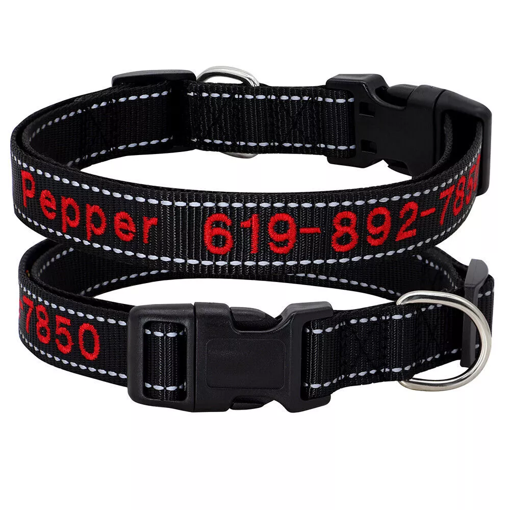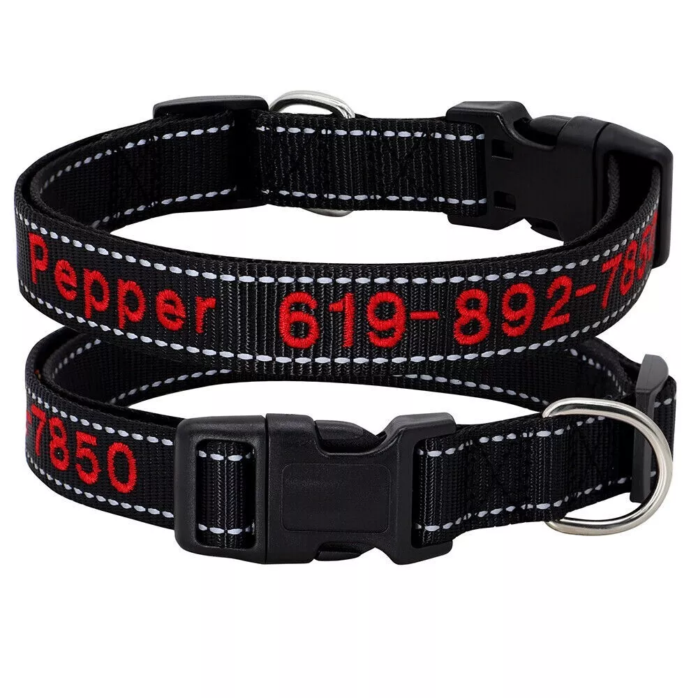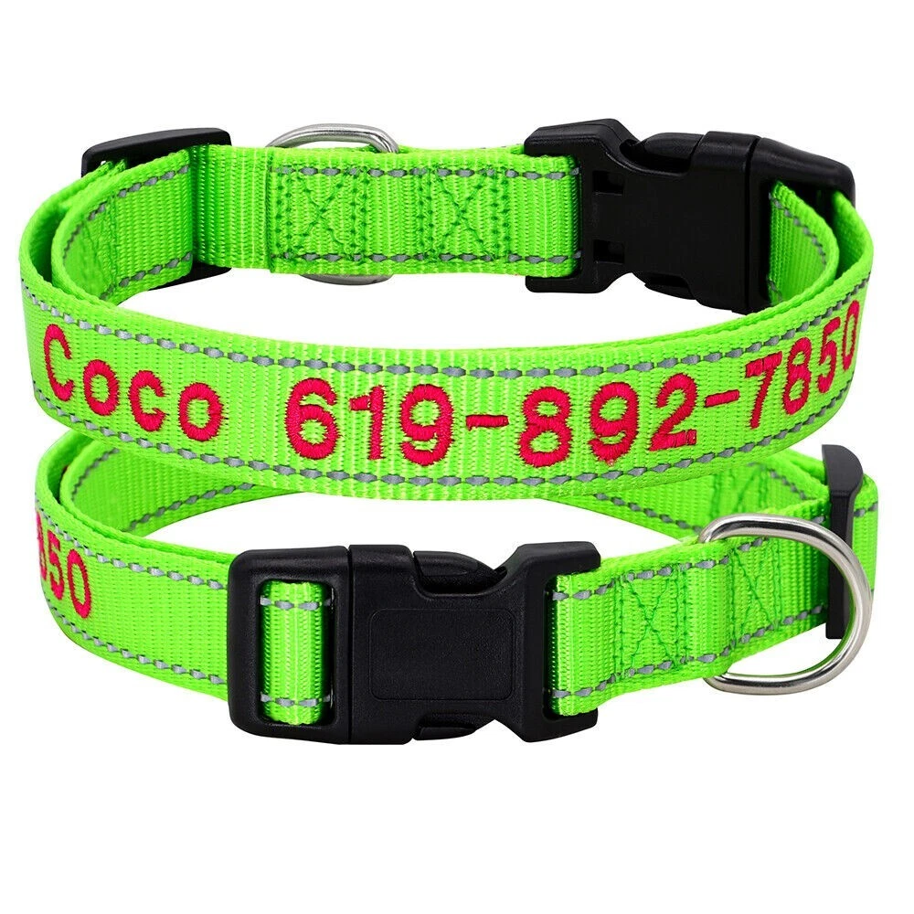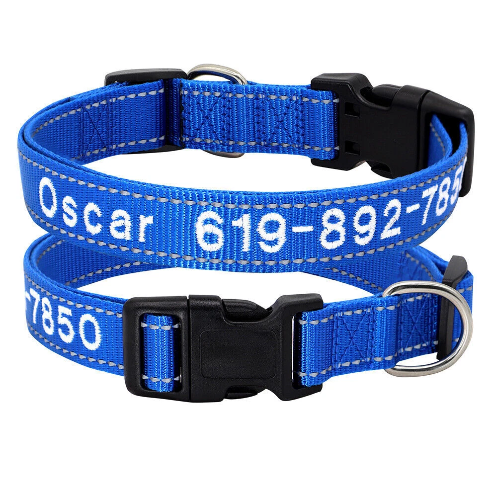 Dog Collar Personalised Embroidered Custom ID Name Phone Number Reflective Nylon