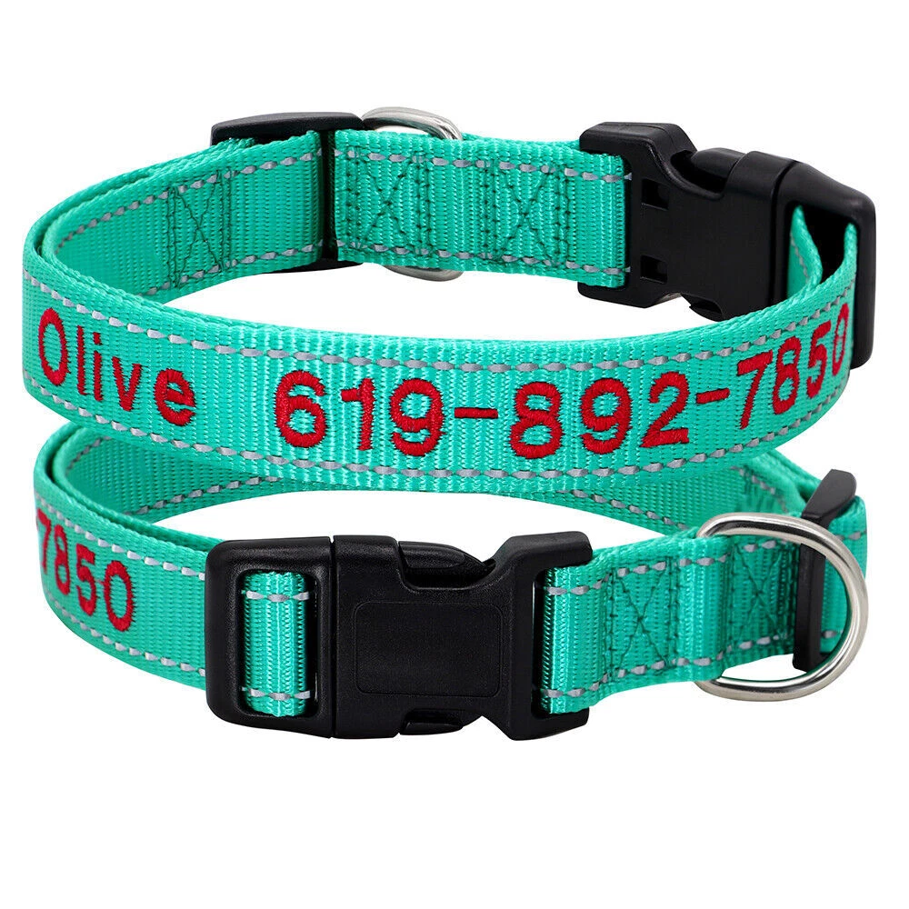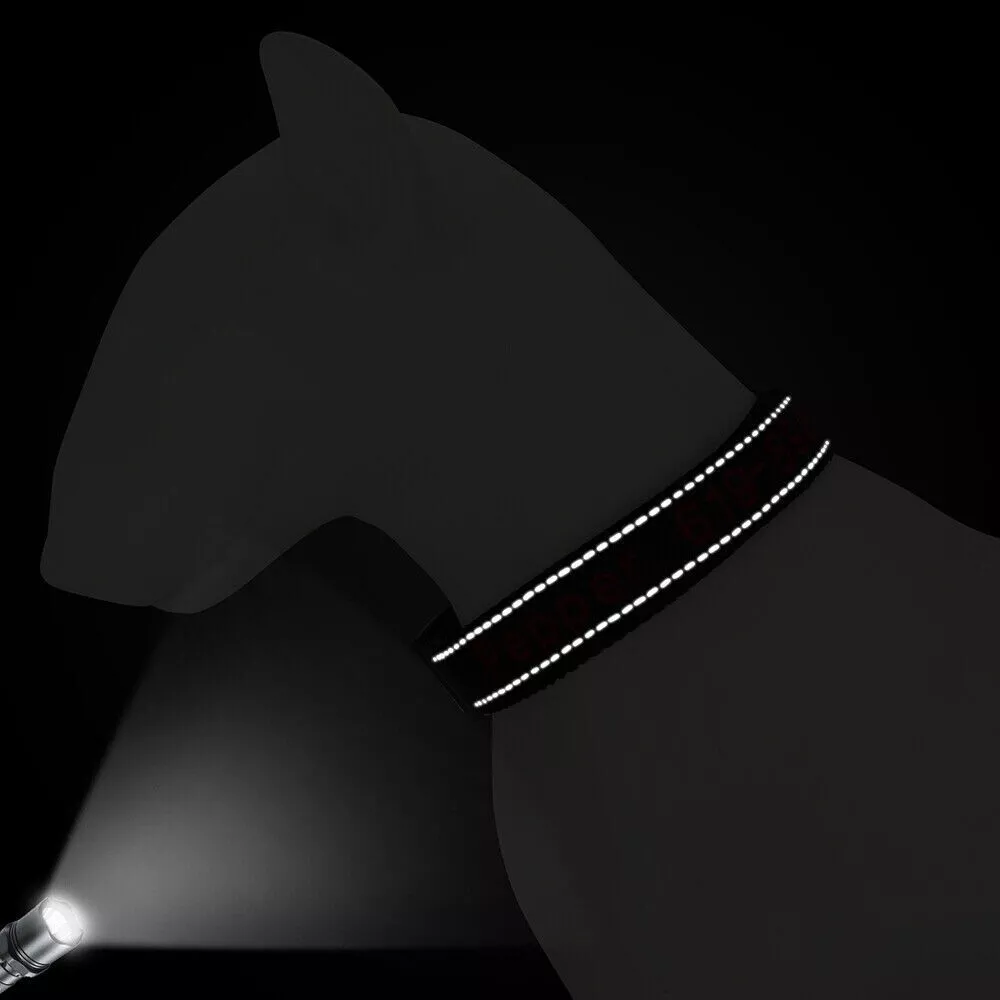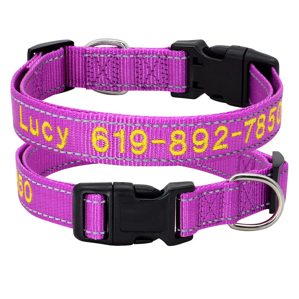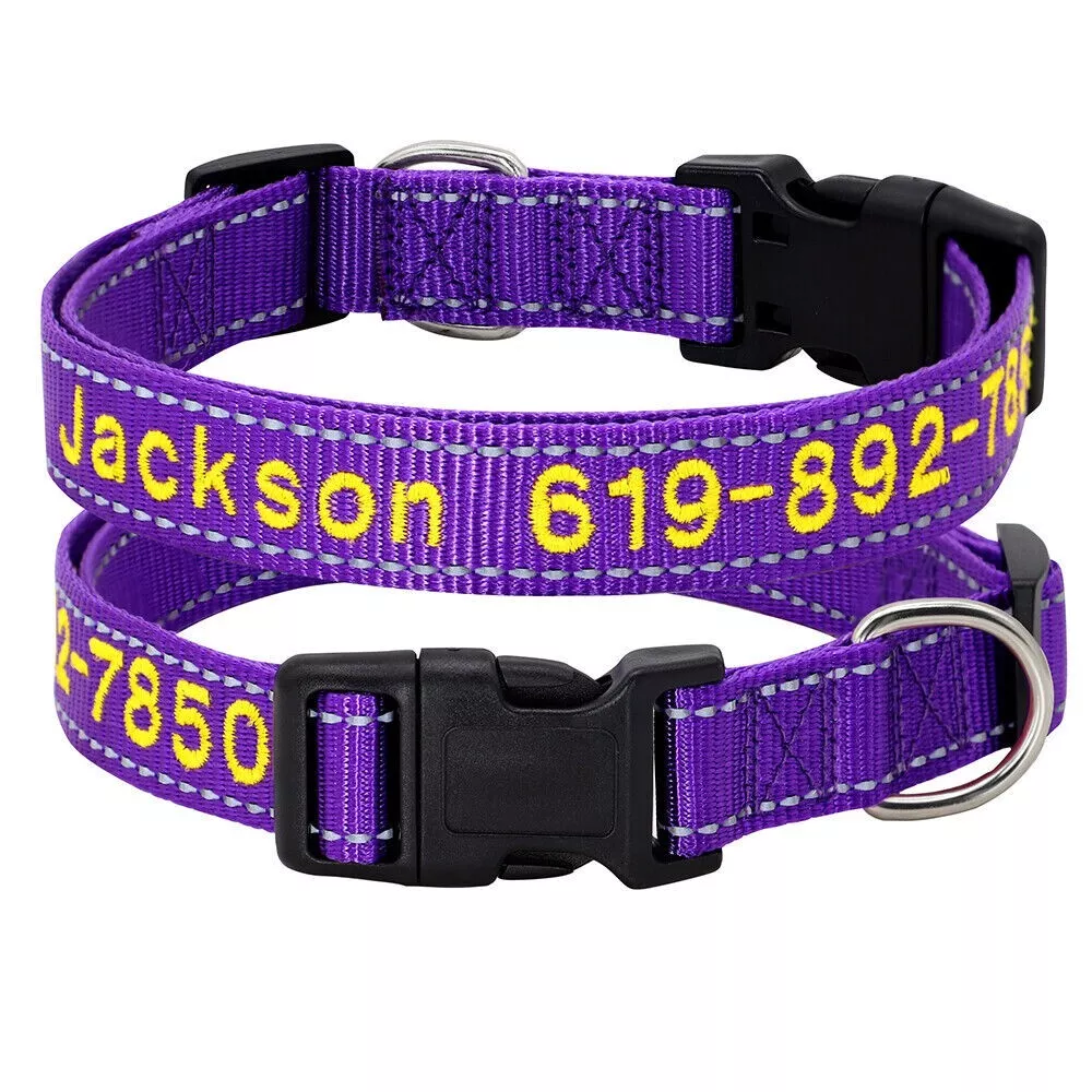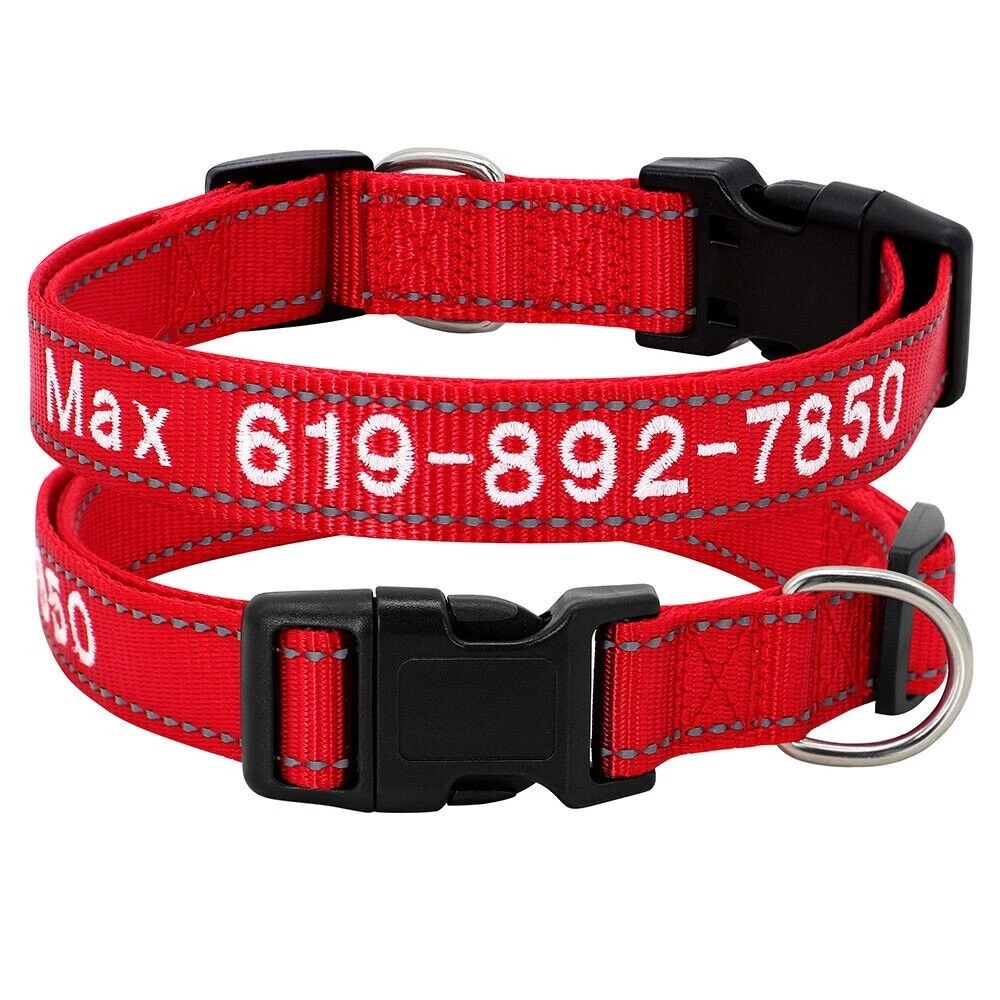 Dog Collar Personalised Embroidered Custom ID Name Phone Number Reflective Nylon