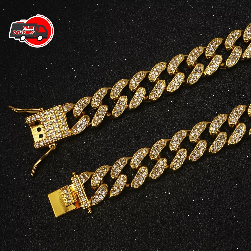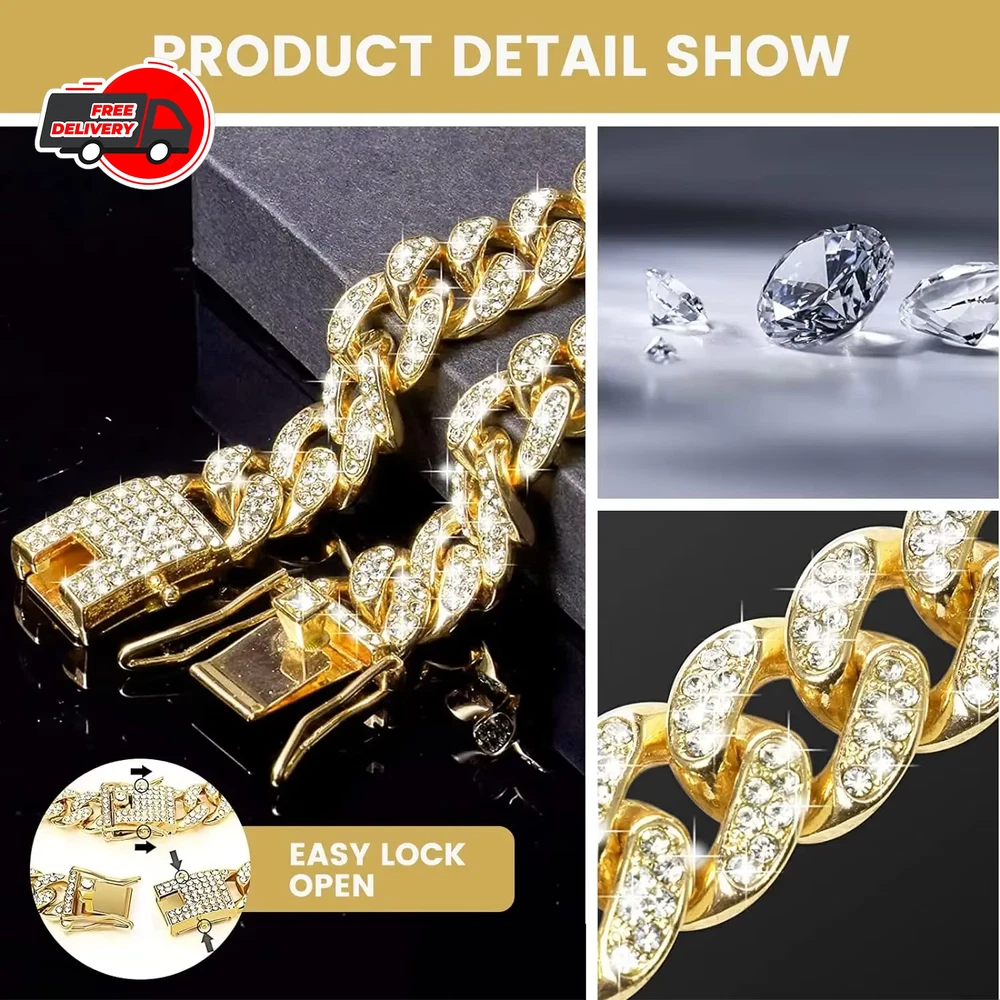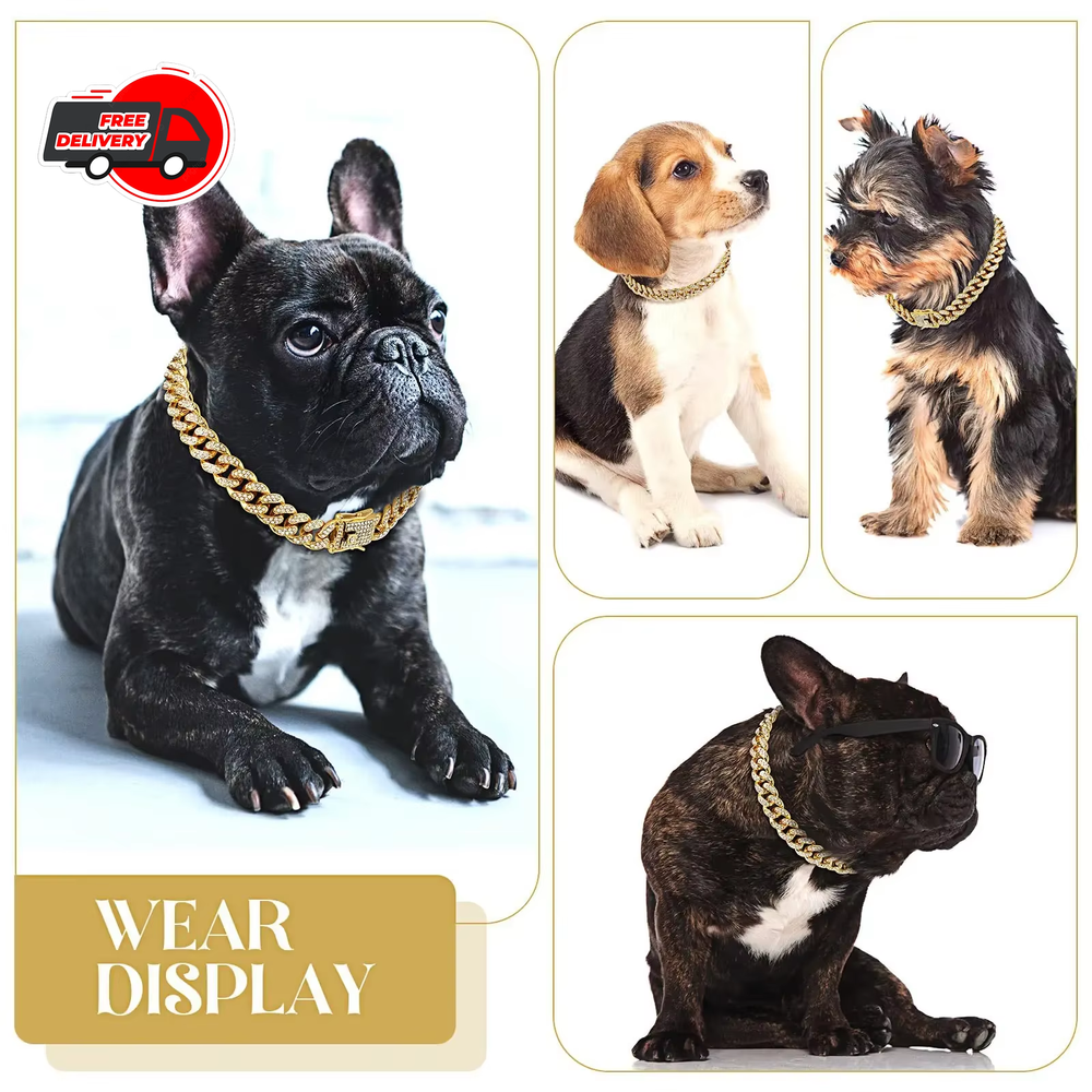 Dog Chain Diamond Cuban Collar Walking Metal Chain Collar with Design Secure Buckle, Pet Cat Cuban Collar Jewelry Accessories Production information: Material: copper alloy, with zirconia diamond Color:Gold/Silver/Rosegold/Blue/Purple/Pink Style1:12.5mm wide Style2:15mm wide Length: 20cm(50g),25cm(55g),30cm(60g), 35cm(70g), 40cm(80g),45cm(85g), 50cm(90g), 55cm(100g), 60cm(110g), 65cm(120g), 70cm(130g) (Due to measurement error, the weight is for reference only, the specific weight is based on the real thing.) Suitable:for Small,Medium,Large Dogs,Cats Package Included: 1 * Dog&Cat diamond necklace Notes: 1. Diamond necklaces are decorative and should not be pulled. 2.Please allow 0-2cm error due to manual measurement. Thanks for your understanding. 3. Monitors are not calibrated same, item color displayed in photos may be showing slightly different from real object. 4.We support large quantities of orders and provide customized services ,the more purchase the more preferential prices. Style1:12.5mm wide