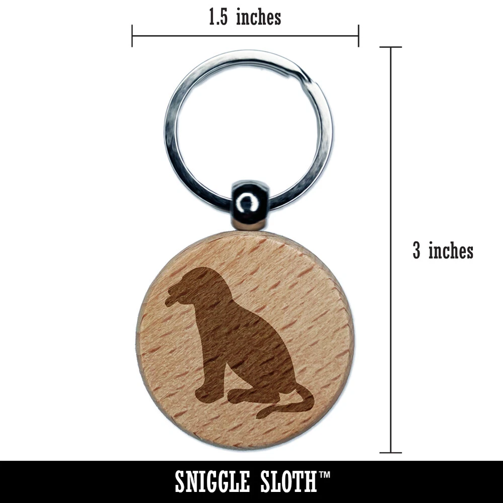 Dog Puppy Tongue Out Sitting Engraved Wood Round Keychain Tag Charm