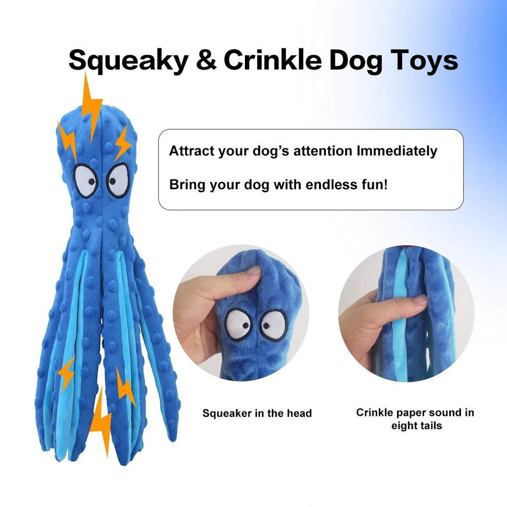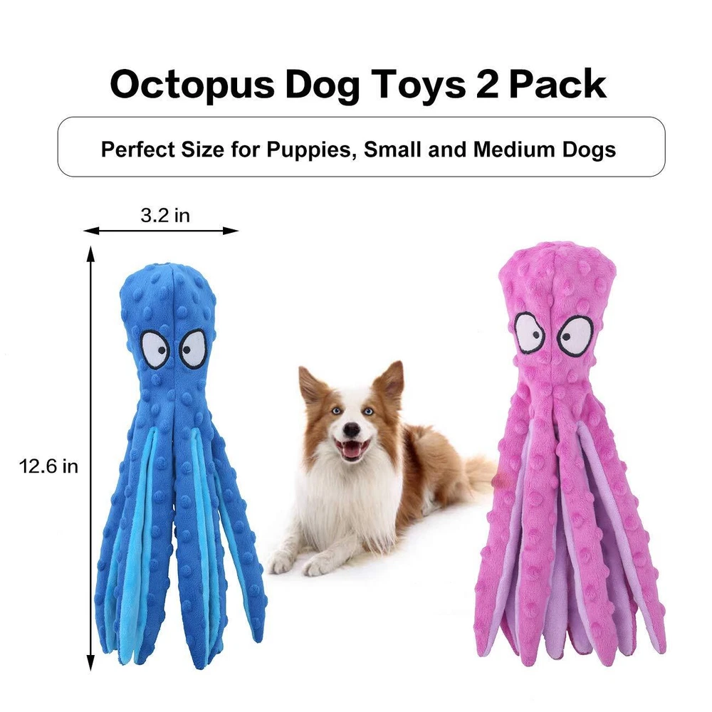Dog Squeaky Toys Octopus - No Stuffing Crinkle Plush Dog Toys for Puppy Teeth...