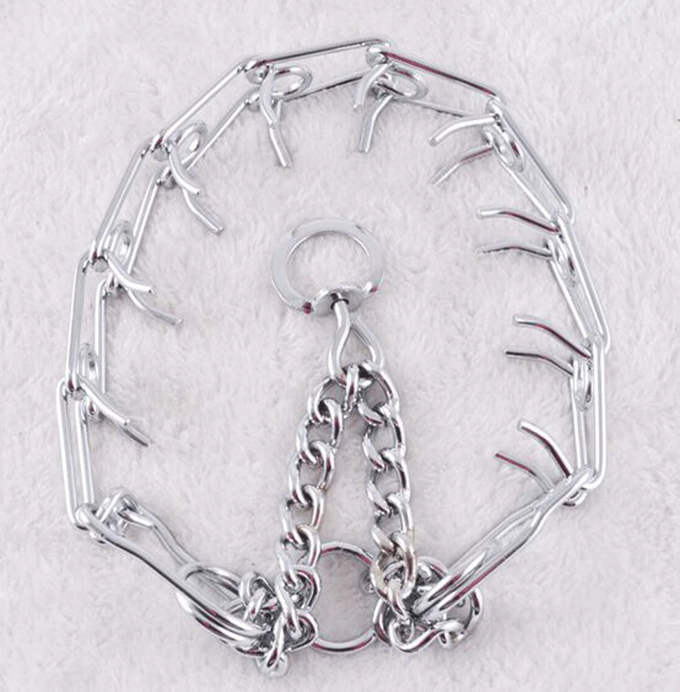 1 Dog Training Choke Chain Collar Metal Steel Prong Pinch 4.0mm Thick x 16"-22" Adjustable As you can Remove or Add Links Need a good training collar but you haven't decided yet which one to choose? We would like to bring to your attention this wonderful Dog Prong Collar with Swivel. Though some people consider prong collars to be harmful for their dogs or ineffective in training, professional dog trainers advise them like humane collars. The thing is that the prongs, which are arranged on the inner surface of the collar, provide an effect of the mother-dog's teeth. They attract dog's attention already when you make a very light jerk. That is why prong collars don't hurt dogs, they just remind them of their instincts. These collars are usually recommended to all people, who don't have enough strength to control their dog's. Moreover, as the prongs pinch straight to the dog's skin, it is very effective for training thick haired dogs as well. Item Description: Wire diameter : 4.0mm Gas Welded licks Butt welded rings Double chrome plated It's very strong made by solid steel. High rust resistance and high gloss. Could be added or reduced some to fit your dog's size. Collars are fully adjustable. Links can be added or removed as needed. Maximum collar interior perimeter of 4.0mm Dog Training Collar is about 21" (54cm). To determine the proper size, please measure the circumference of pet’s neck and add 2". Package Included: 1 x Adjustable Dog Training Collar Maximum Collar interior (inside Collar) perimeter is approx. 20" inches (Interior perimeter is approximately 20"inches: exterior perimeter is approximately 22"inches, This measurement is after you get the collar on pets neck.) How to Determine Proper Size : Measure the circumference of pet’s neck and add 2" inches If you live in Alaska, Hi, PR, VI your item will take much longer for you to get it