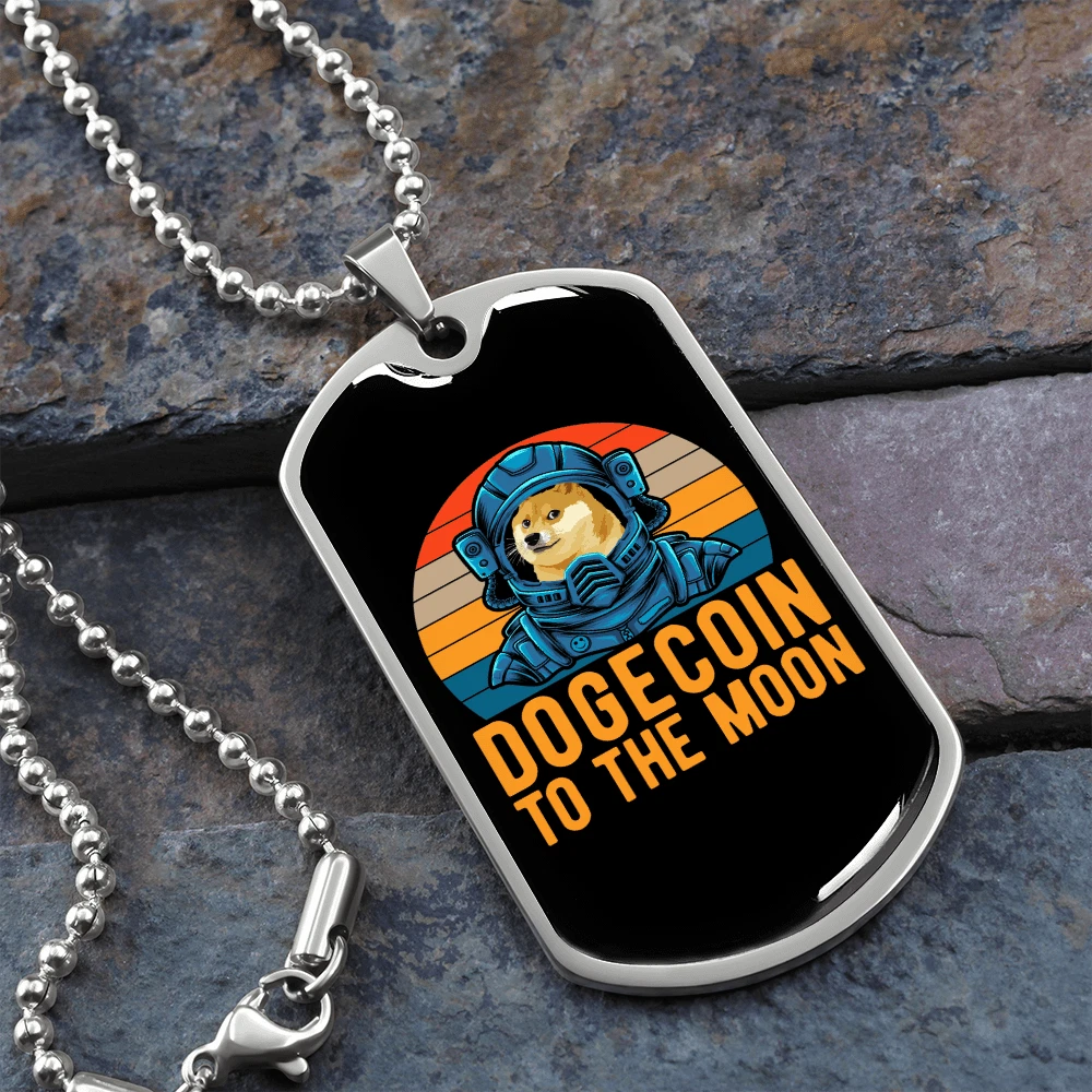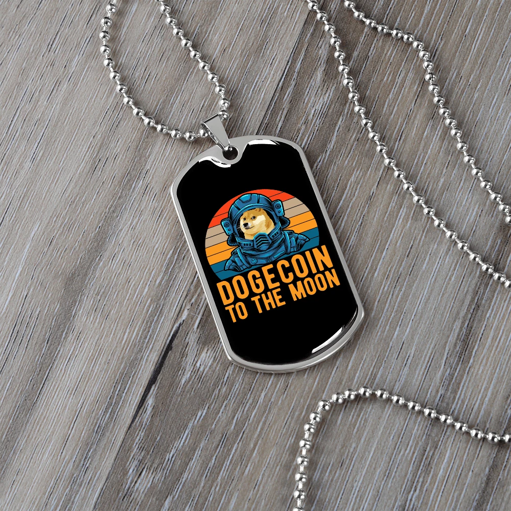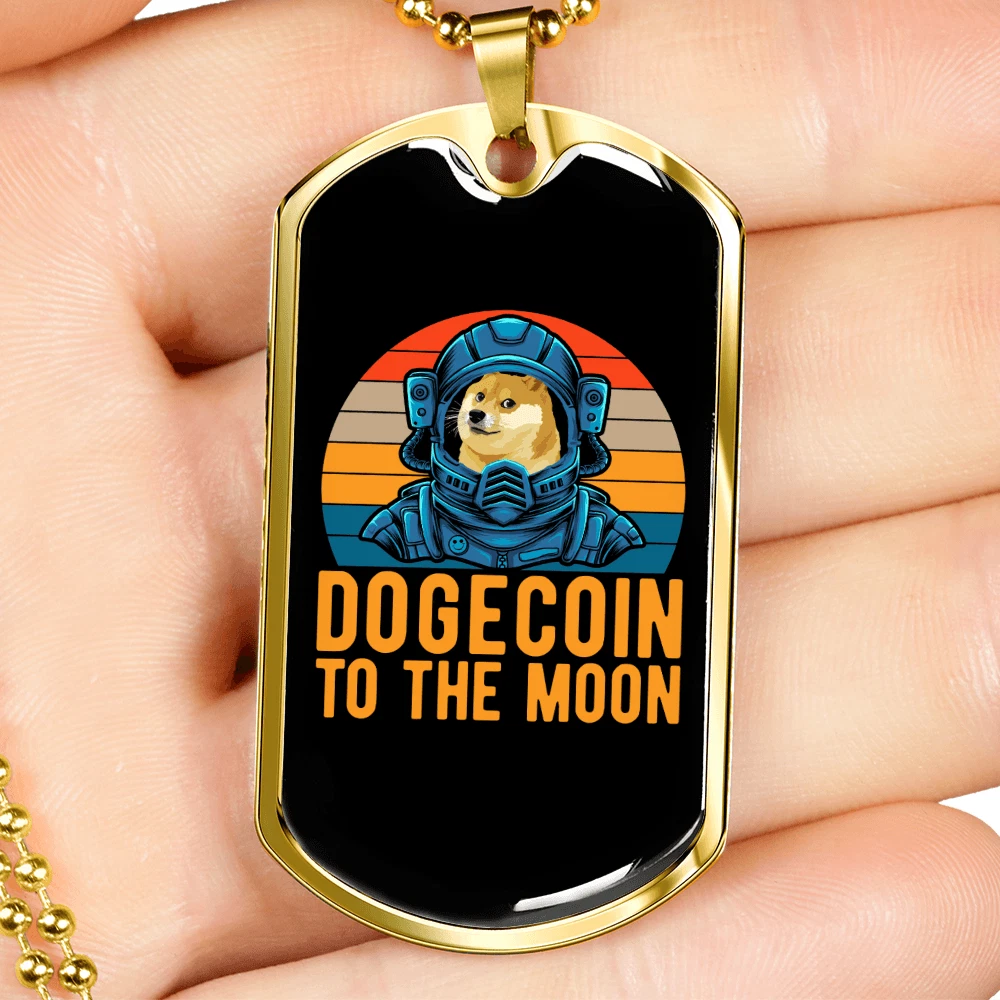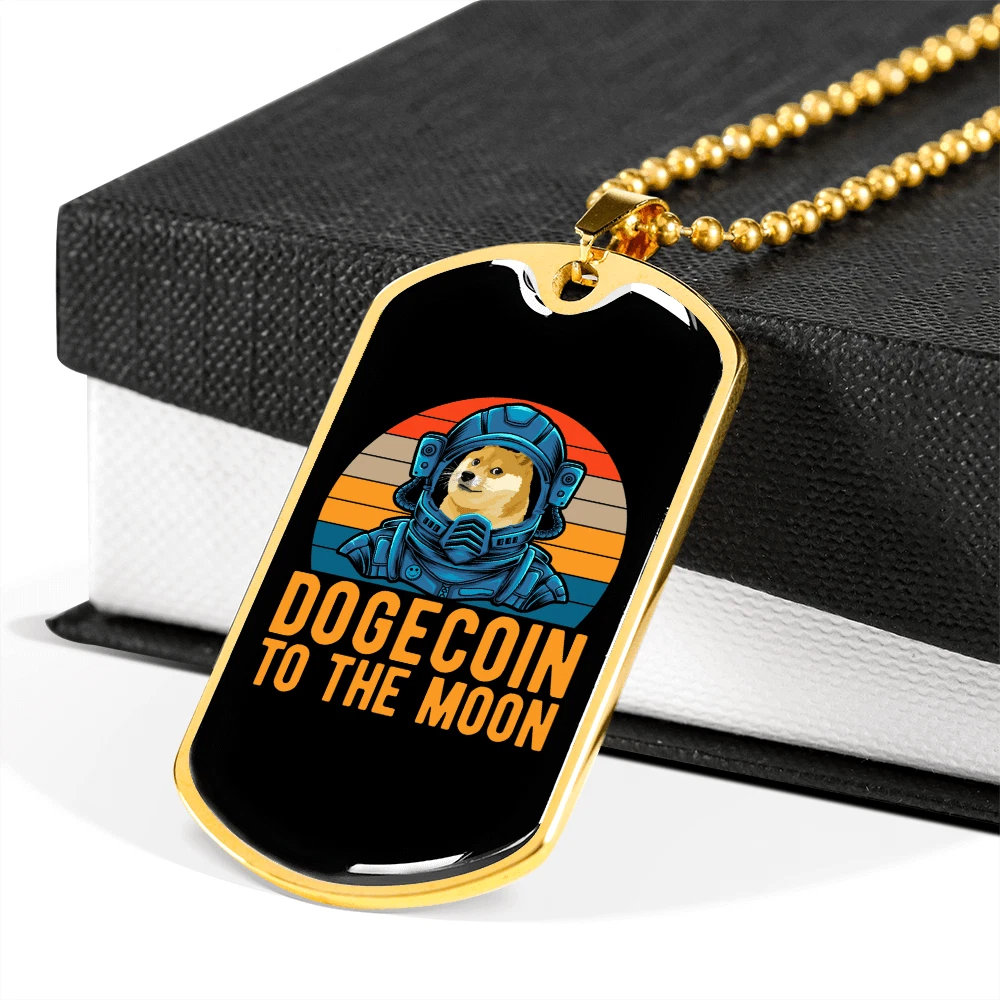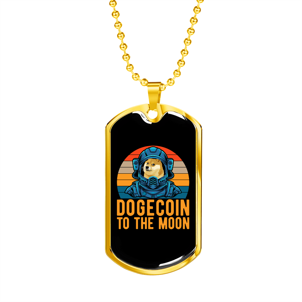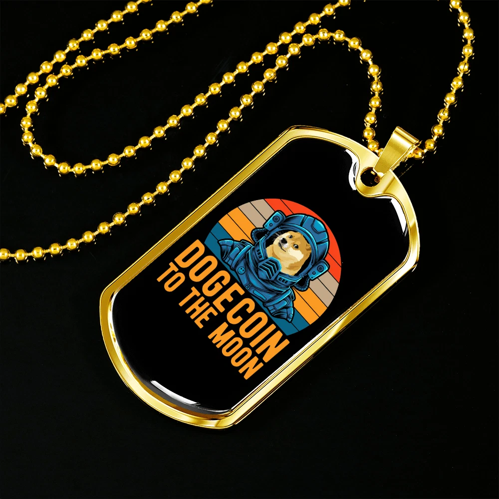 Dogecoin To The Moon Crypto Necklace in Stainless Steel or 18k Gold with 24-Inch Chain