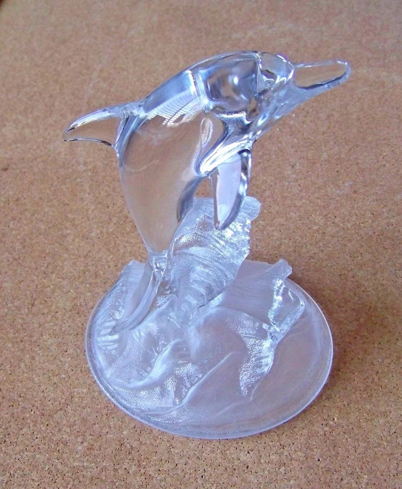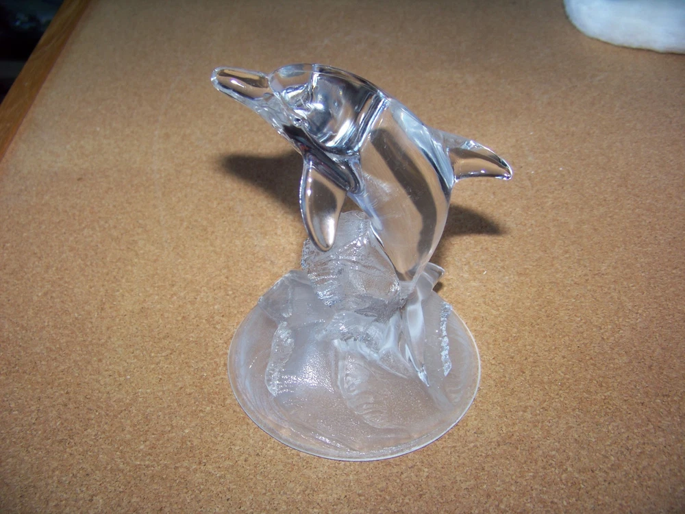 Dolphin jumping from the waves glass figure figurine statue Measures about 6" tall, 4.5" long, and about 3.9" wide. Excellent condition, no chips, cracks, or problems. Don’t forget to click on my "Stores" link, next to my eBay name, to see other items I currently have listed for sale, or you can copy and paste this address into your browser: stores.ebay.com/highcountrycollectibles SHIPPING INFORMATION Shipping to U.S. addresses is FREE! HIGH COUNTRY COLLECTIBLES Since 1989 – A LEADER IN THE DENVER SPORTS MEMORABILIA MARKET. Check out my other auctions and listings, and keep an eye out for the different, unusual, and EXCLUSIVE items available nowhere else but from High Country Collectibles.