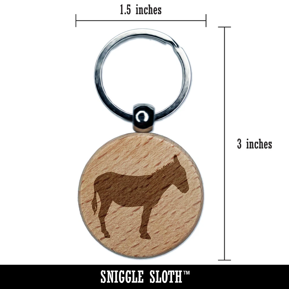 Donkey Silhouette Solid Engraved Wood Round Keychain Tag Charm