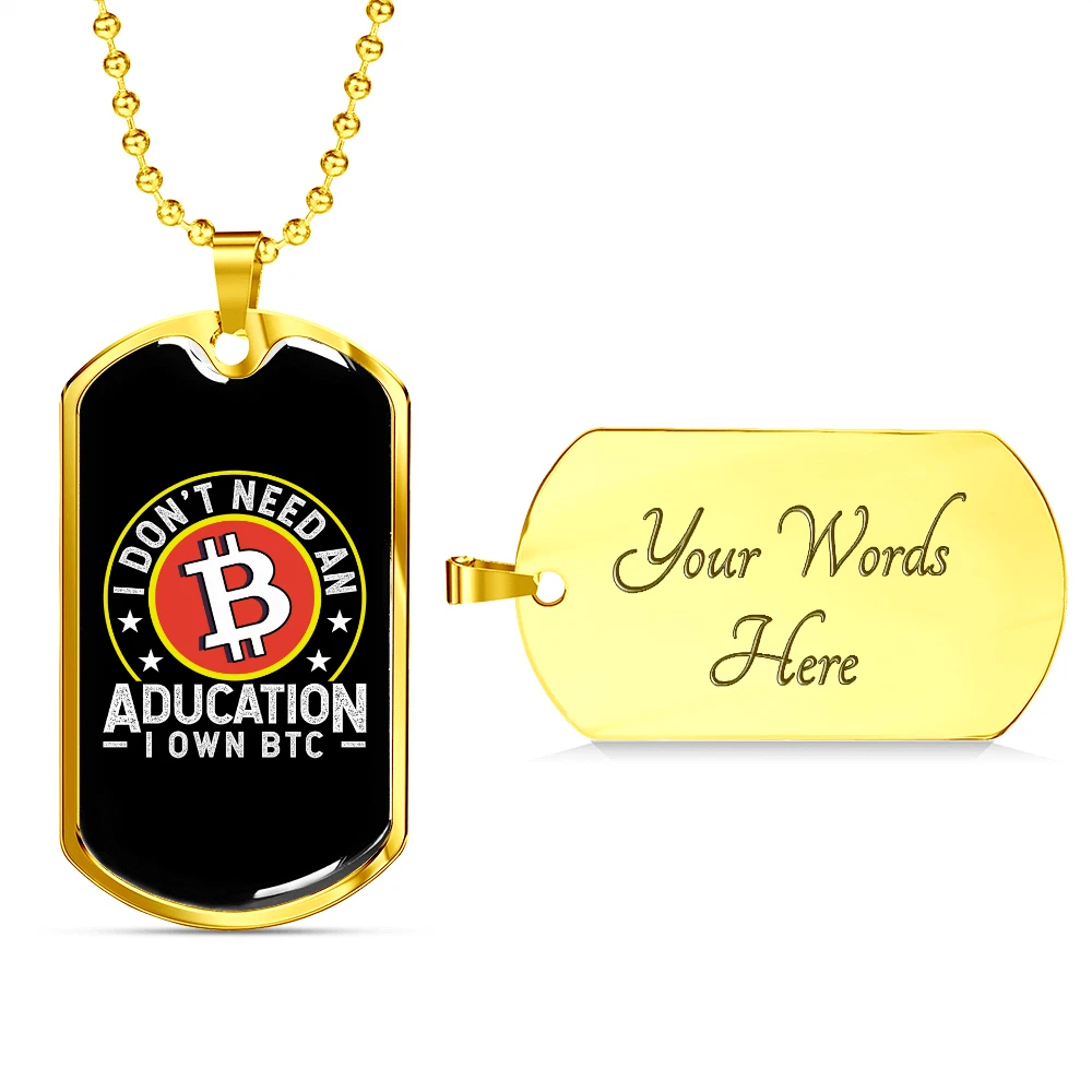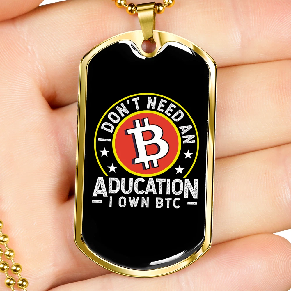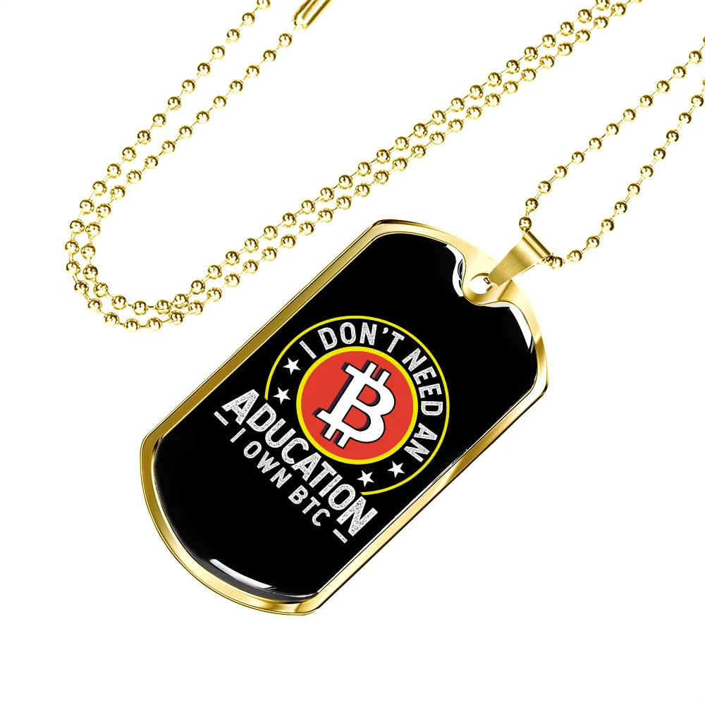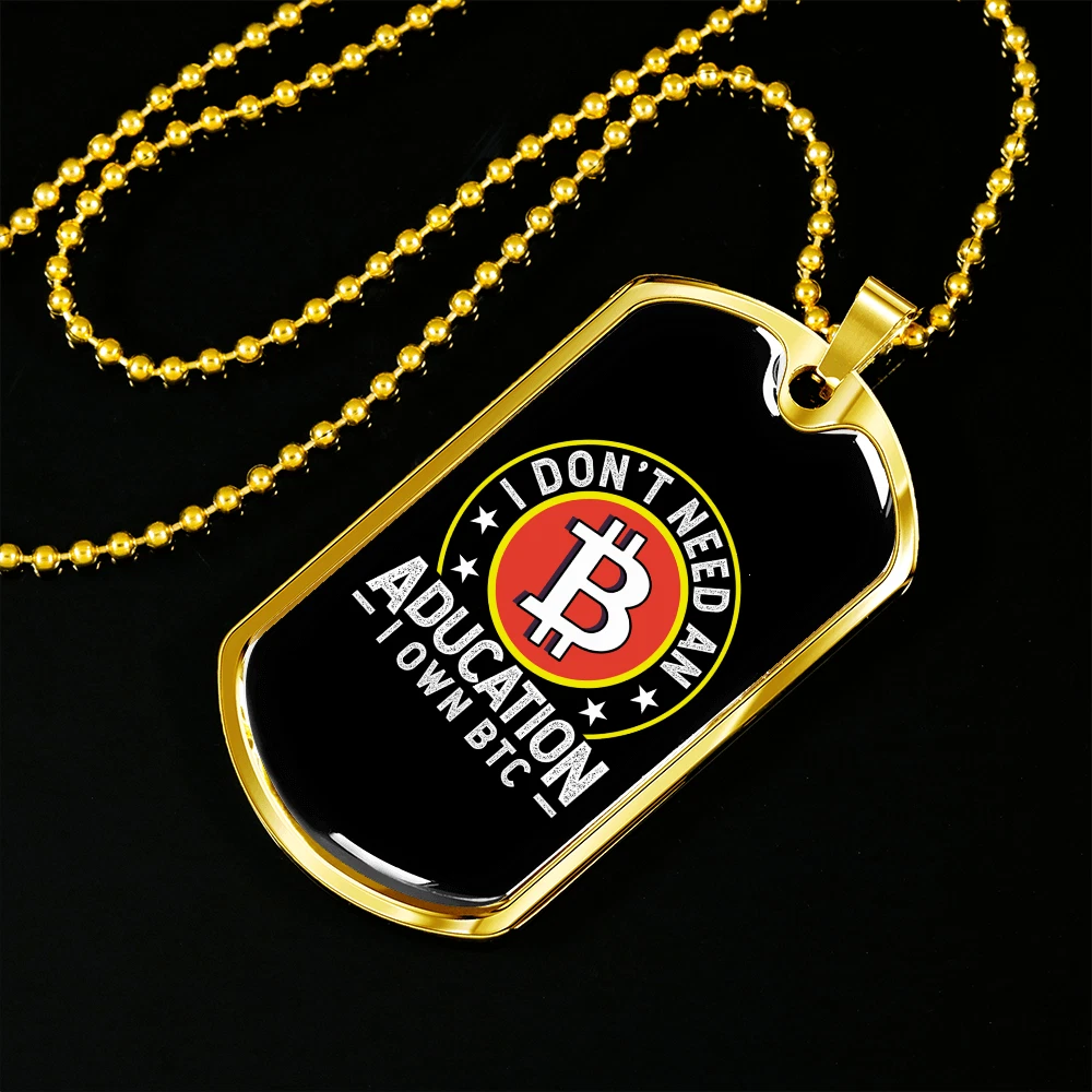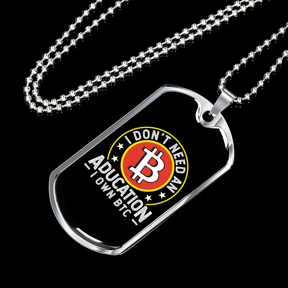 Don't Need Aducation Crypto Necklace Stainless Steel or 18k Gold Dog Tag 24" C